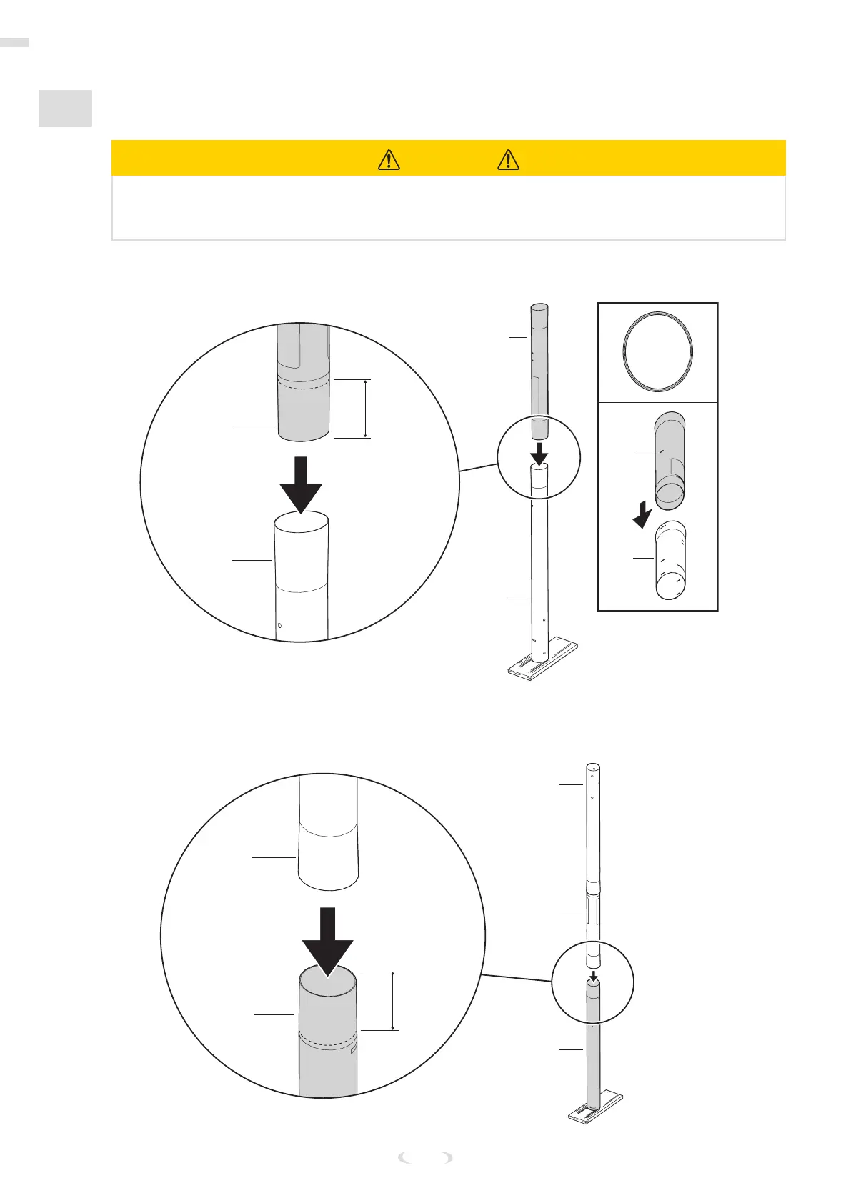 IF MINIMUM POLE ENGAGEMENT OVERLAP OF 9 CM (3.5 in) CANNOT BE ACHIEVED !! STOP !! DO