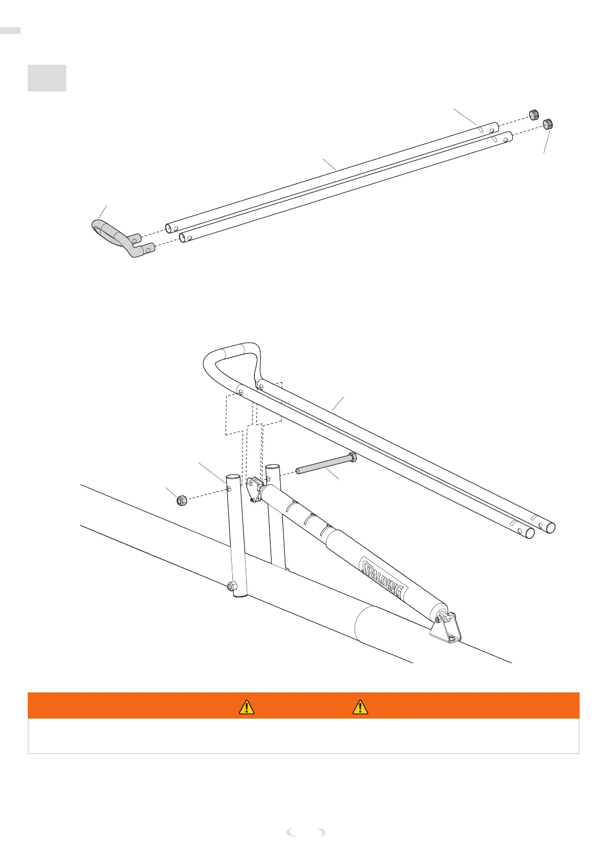10. Inserte el perno (44) a través de los brazos de la manija (53), los tubos verticales (52) y el soporte