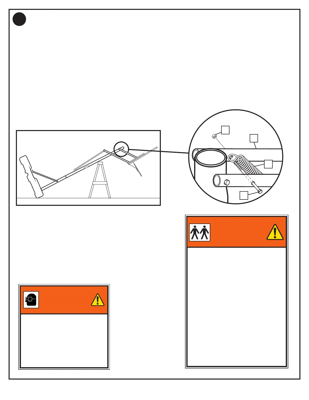Support system on sawhorse. Extend system to highest position before assembly of spring. Stretch counterbalance