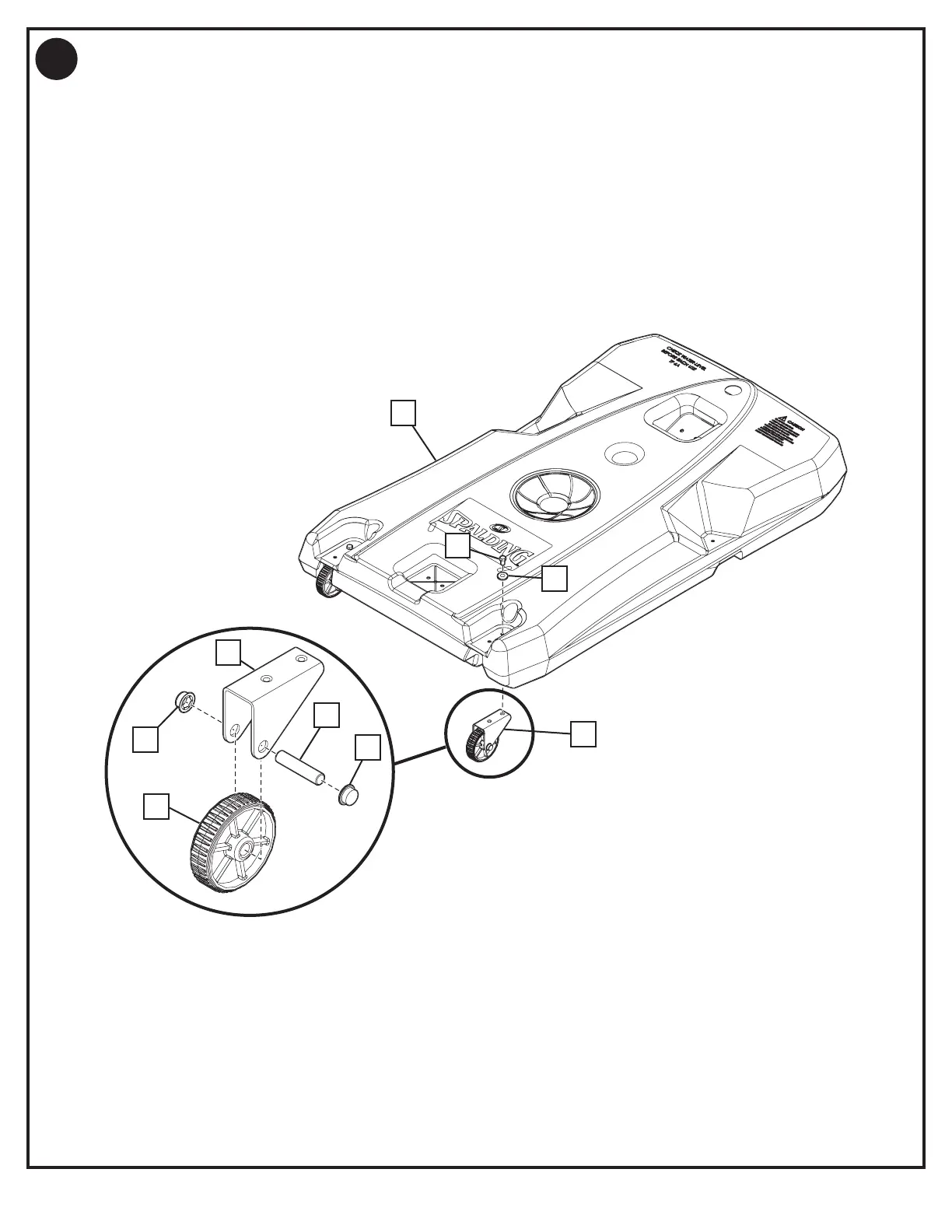 the base (1) with a single bolt (18) and washer (24). Repeat procedure for opposite wheel.