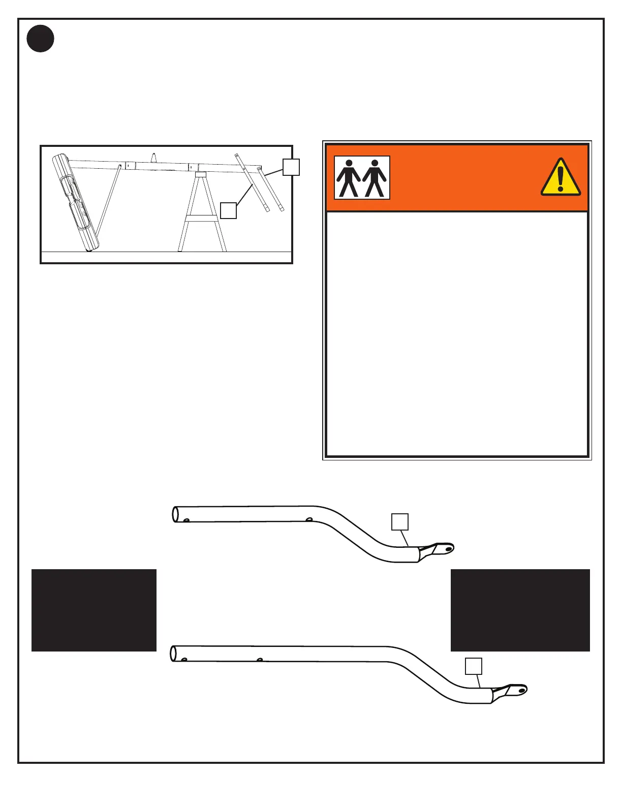 Den Aufbau sicher auf dem Sägebock ablegen. Die Hubrohre (32 und 35) zurechtlegen.
