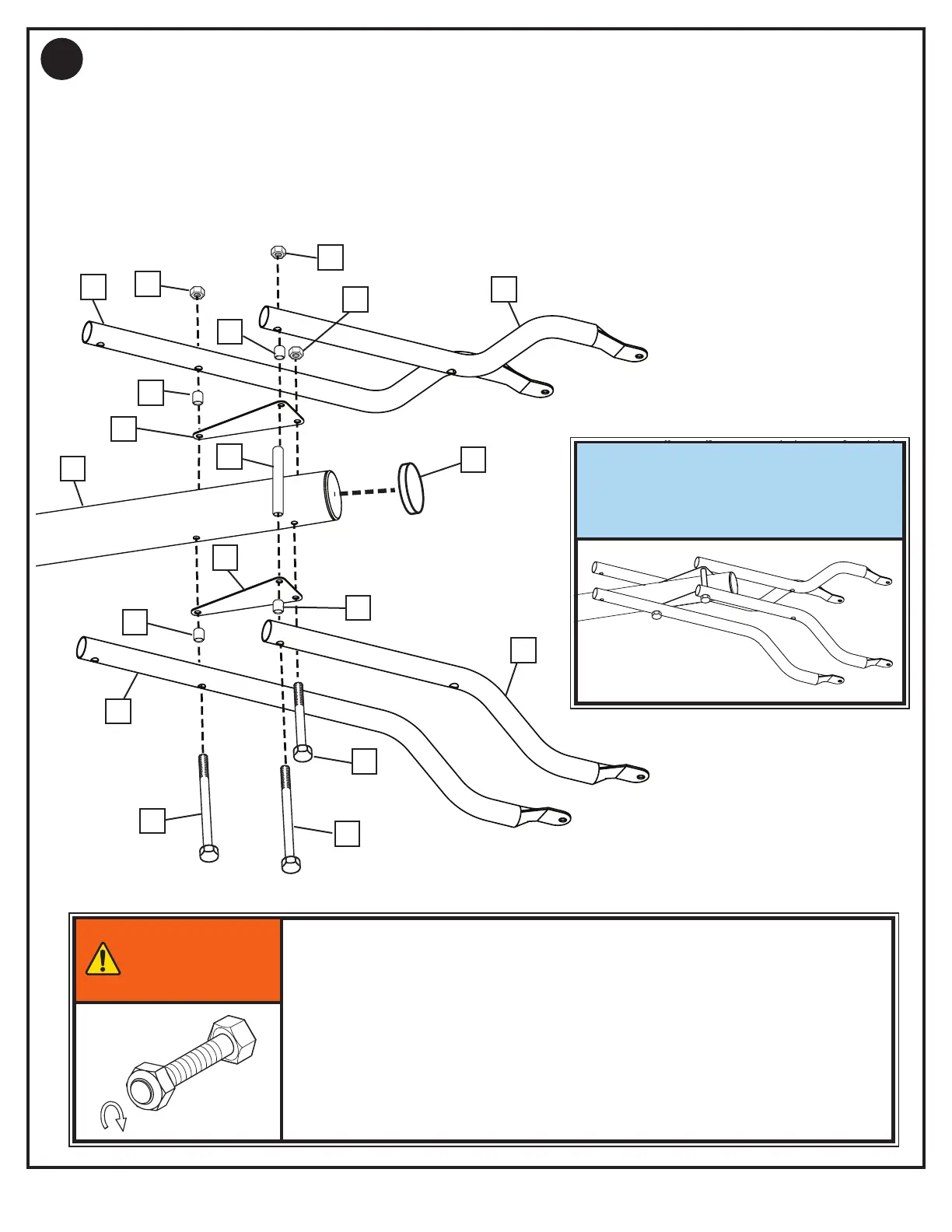 Mientras el sistema está apoyado de forma segura en el caballete. Instale los tubos elevadores (32 y 35) en la