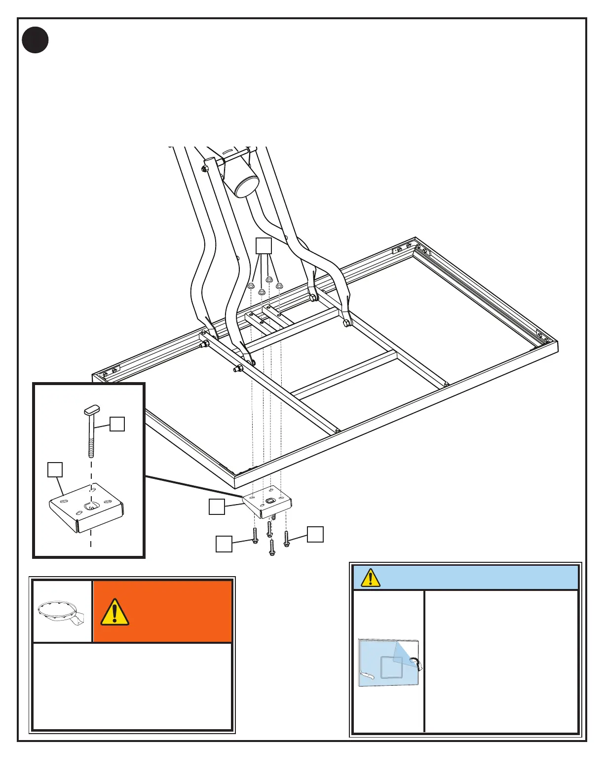 Insérez le boulon en T (45) dans le support de Slam Jam (44), puis attachez l’ensemble au panneau à l’aide des boulons (26) et des