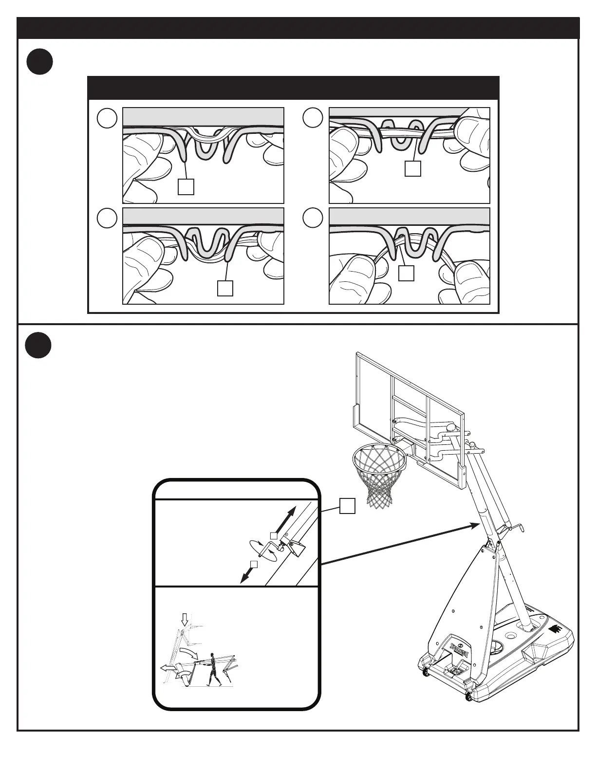 Install net (43). / Installez le filet (43). / Das Netz (43) anbringen. / Instale la red (43).