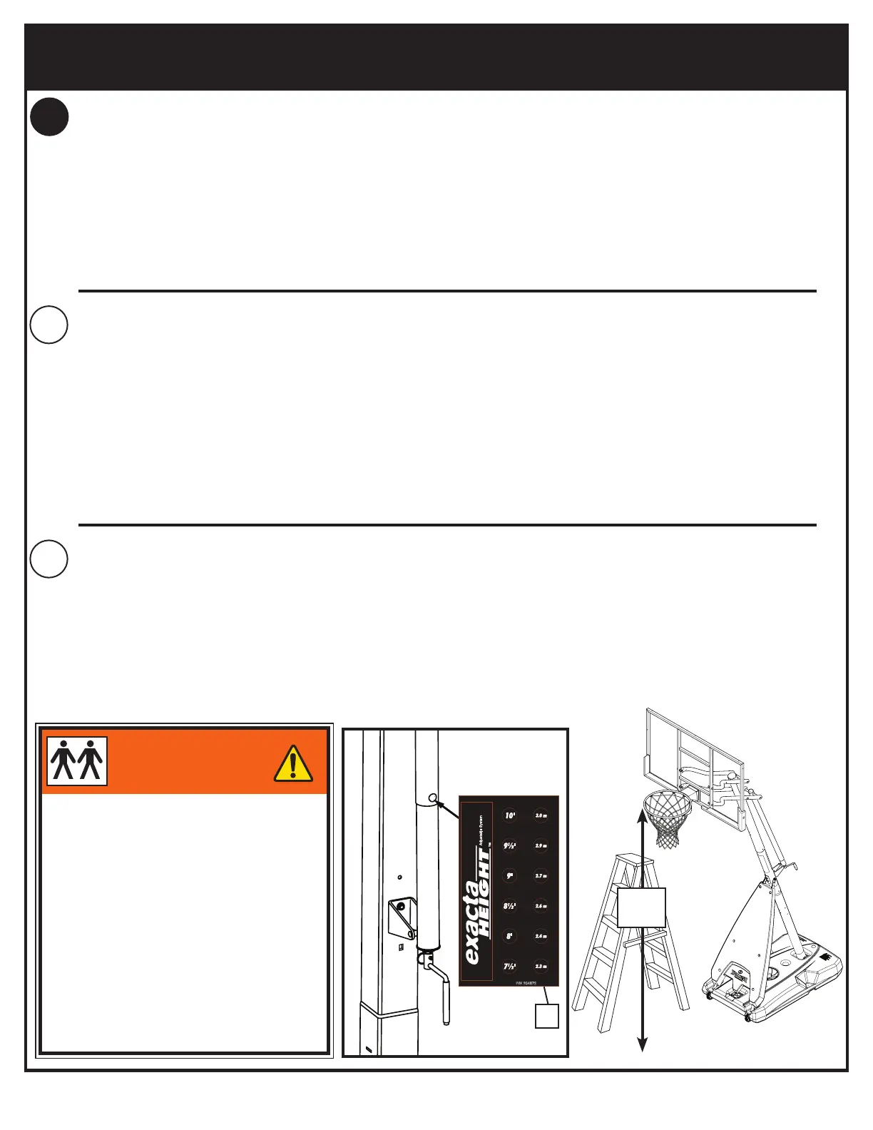la parte superior del aro hasta la superficie de juego. Coloque la pegatina de 7-1/2 pies (2,3 m) en el centro del agujero de la