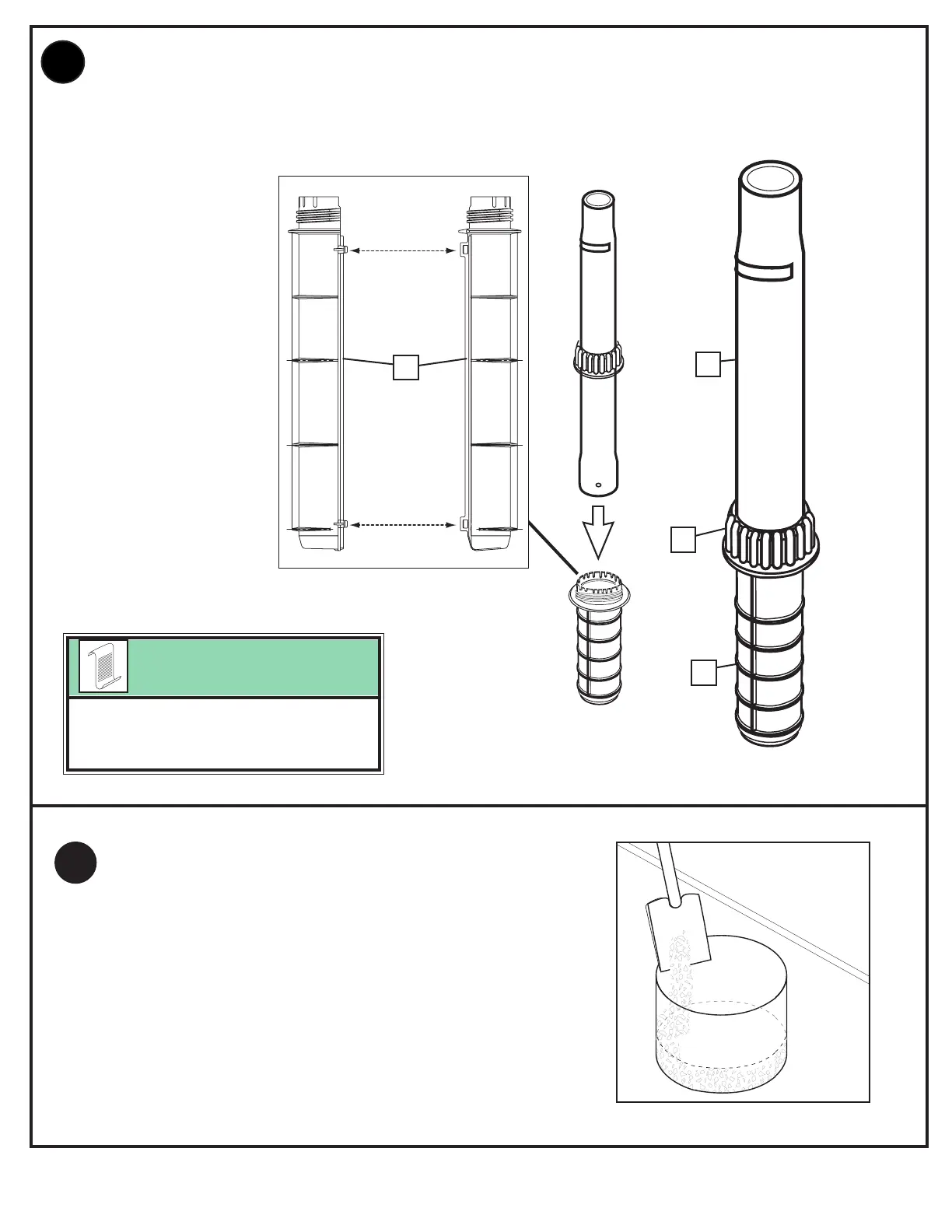 Snap the two halves of ground sleeve (4) together. Insert and secure the bottom pole section (3) into the