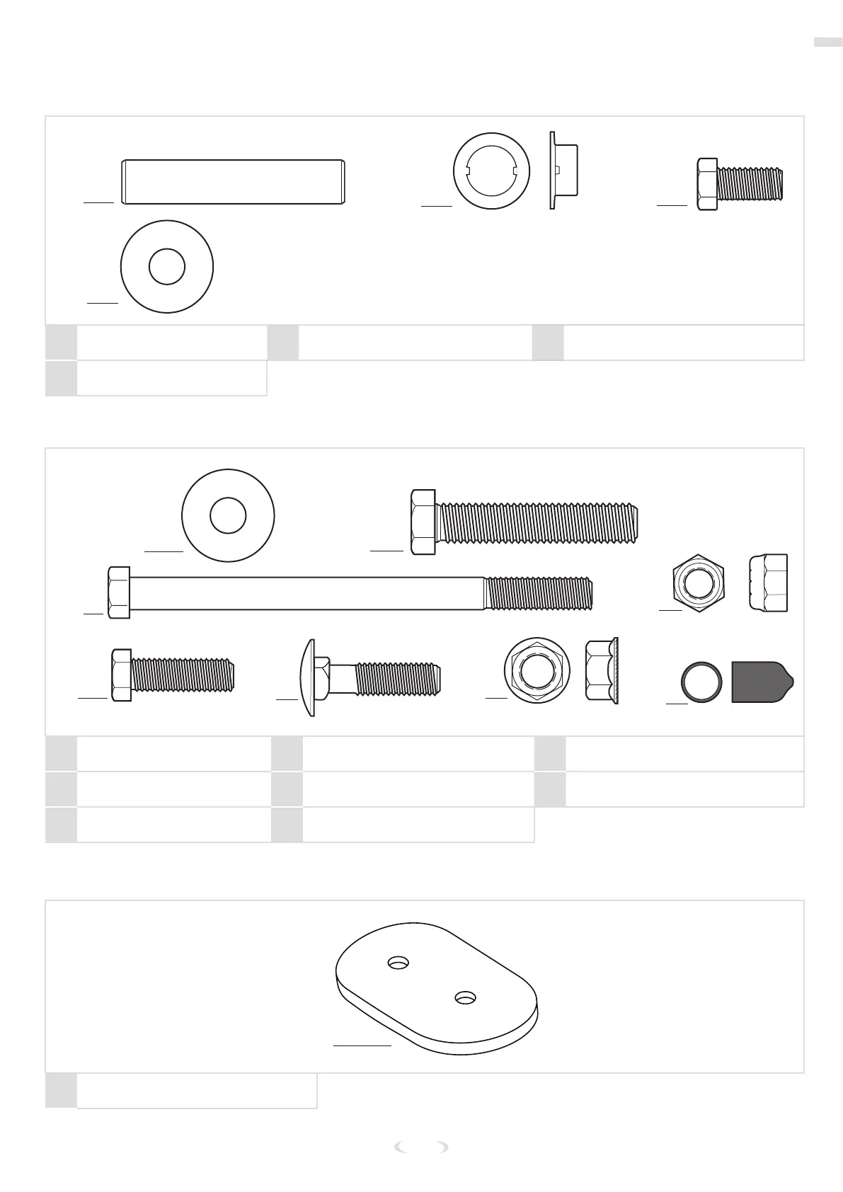 6 Rod, Axle (x2) 7 Pushnut, 7/16 Shaft Diameter (x4) 8 Bolt, Hex Head, 5/16-18x0.625L (x2)