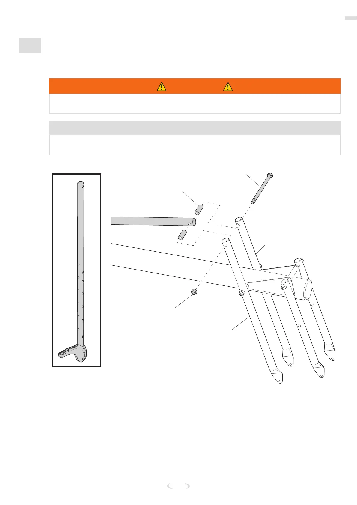 5. Fije el montaje de la manija en los tubos del elevador inferiores (32) utilizando el perno (37), los