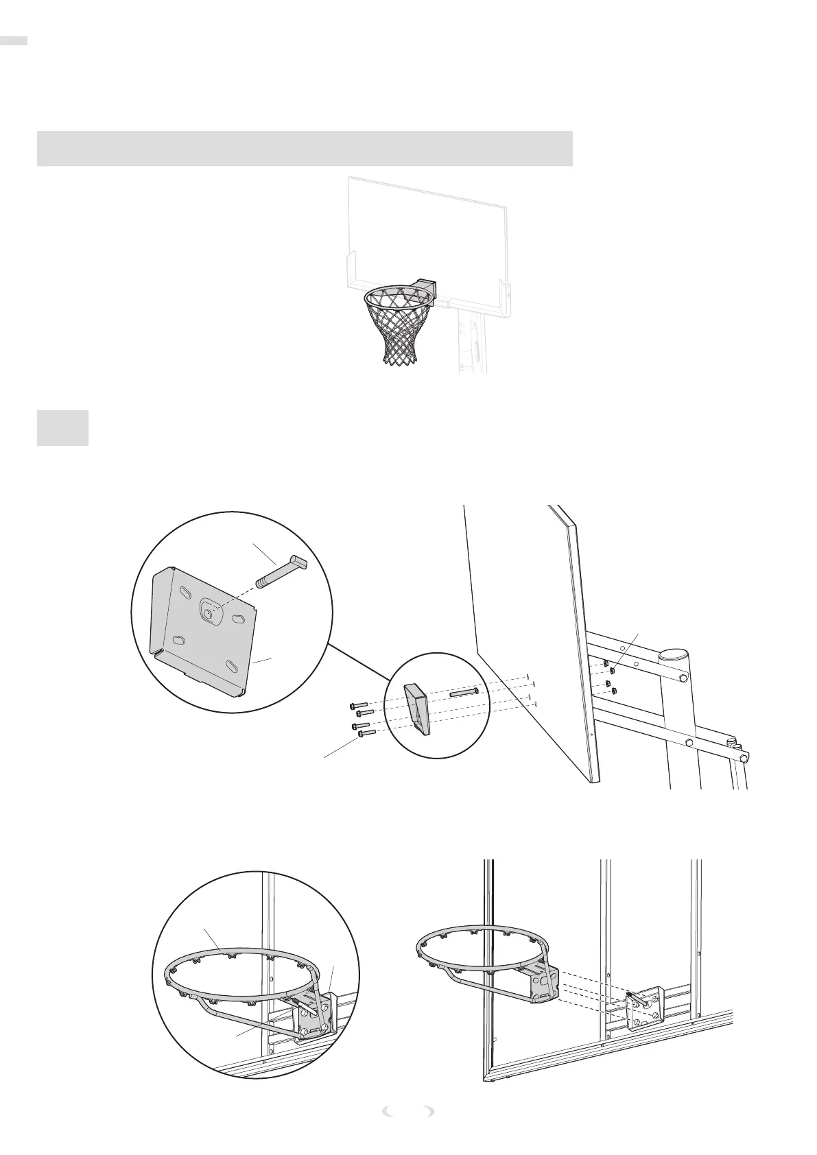 2. Secure the slam jam bracket (32) to the backboard using the bolts (51) and nuts (16).