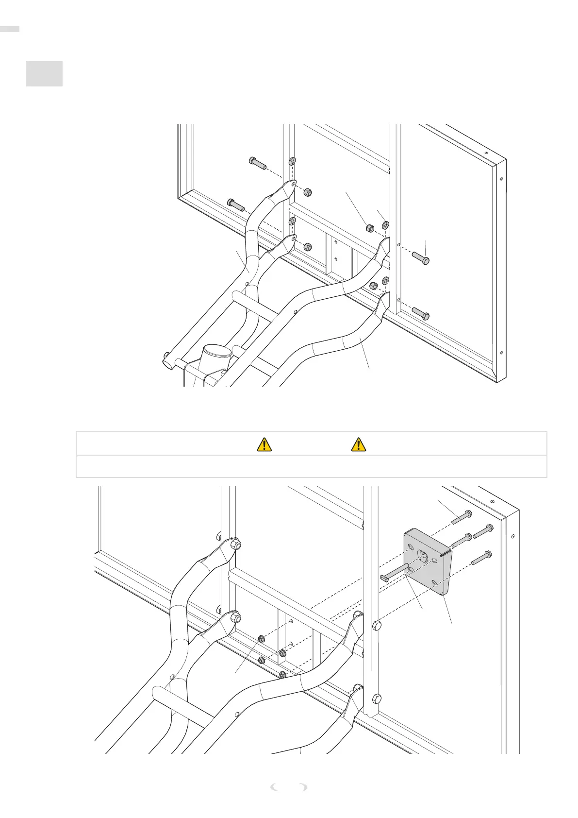 1. While still supported on sawhorse, attach the elevator tubes (32, 35) to the backboard using the