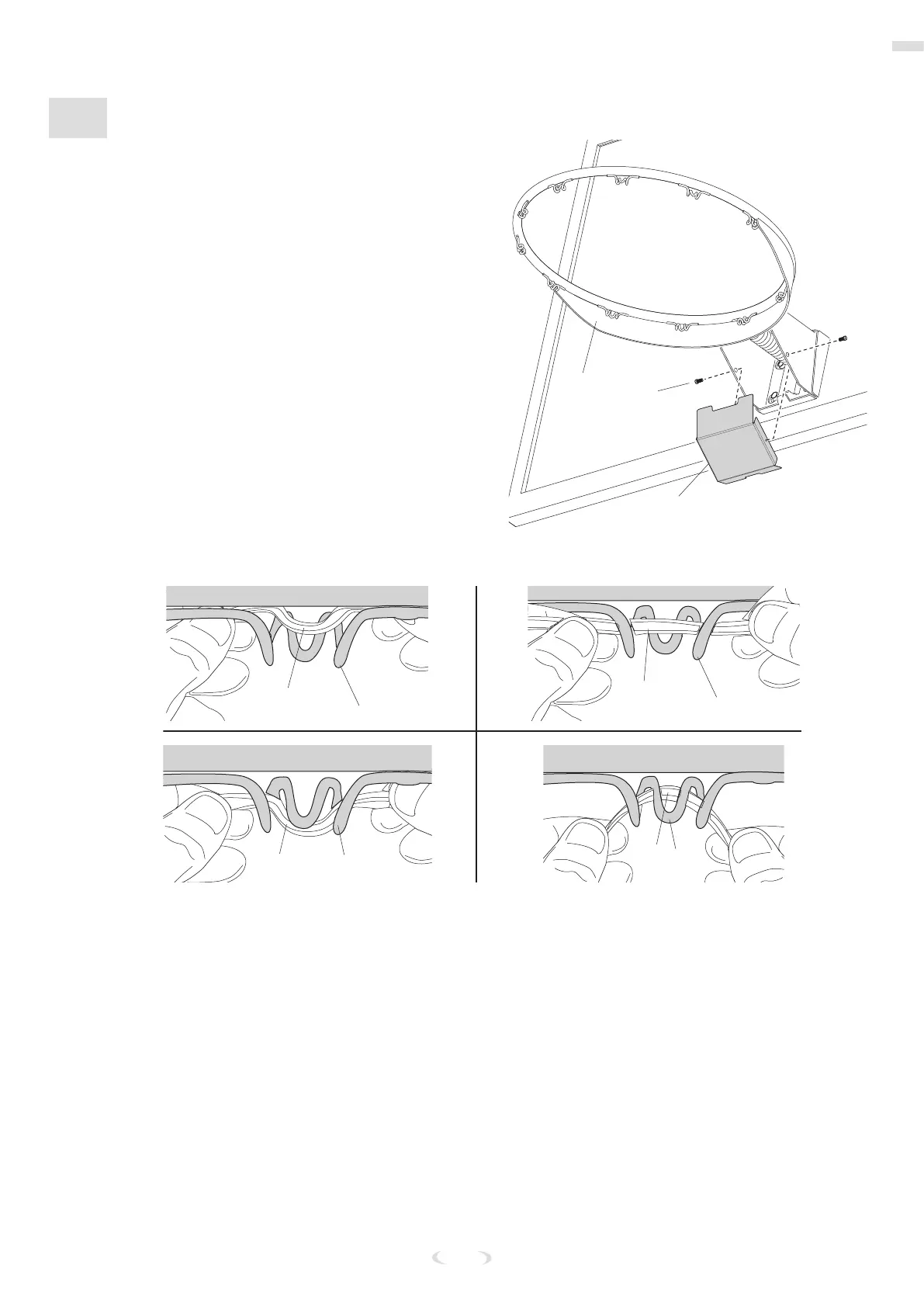 7. Thread the net (43) onto the rim (34).