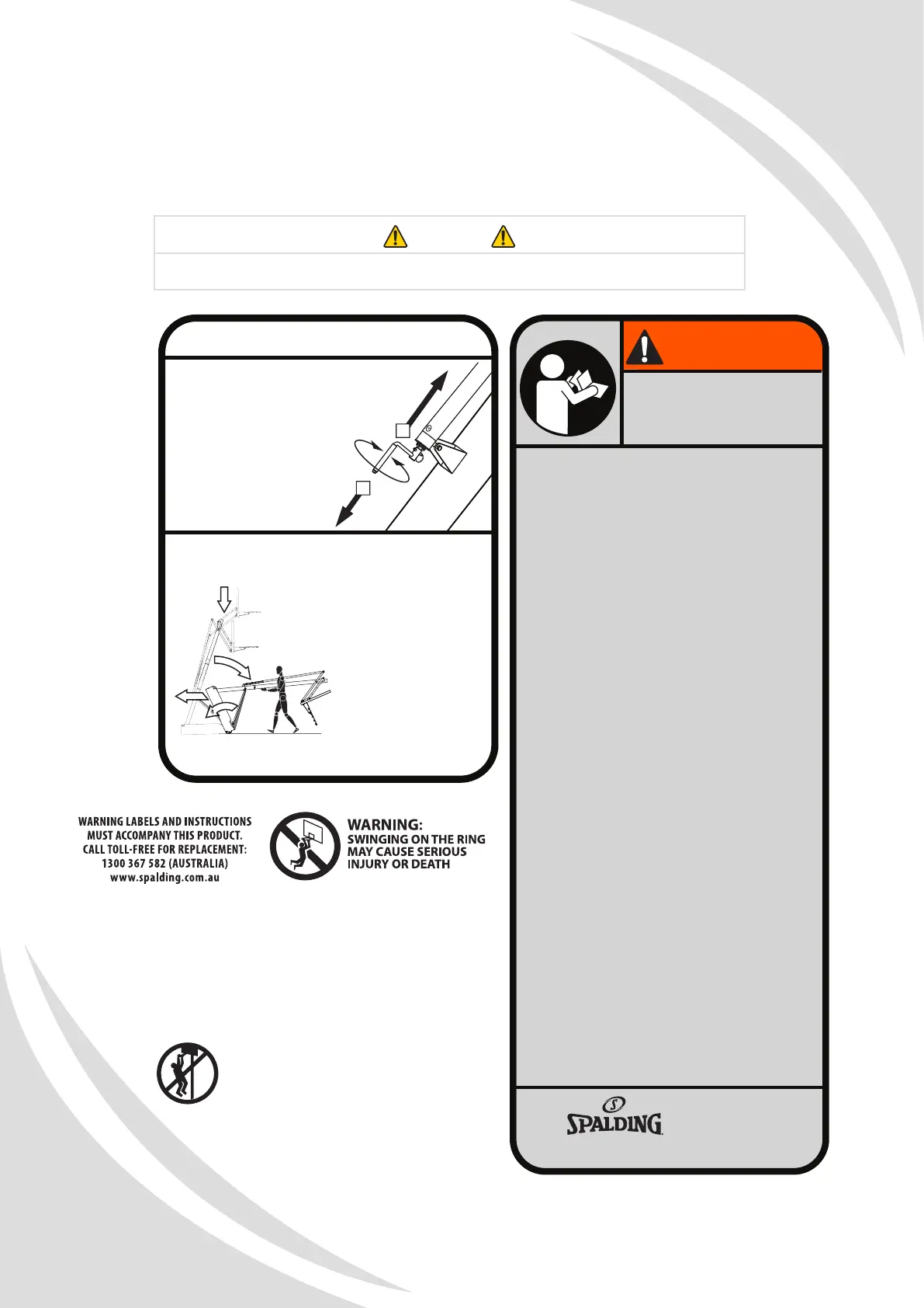 • DO NOT hang on the rim or any part of the system including
