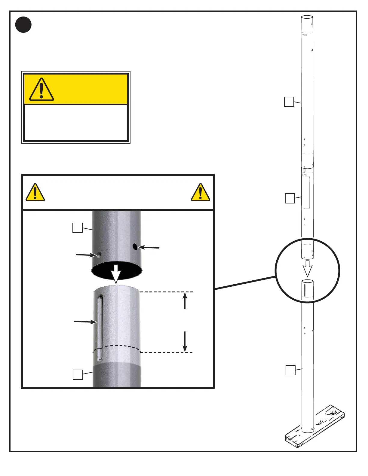 Bounce until the top and middle pole assembly (4 and 5) is aligned with the