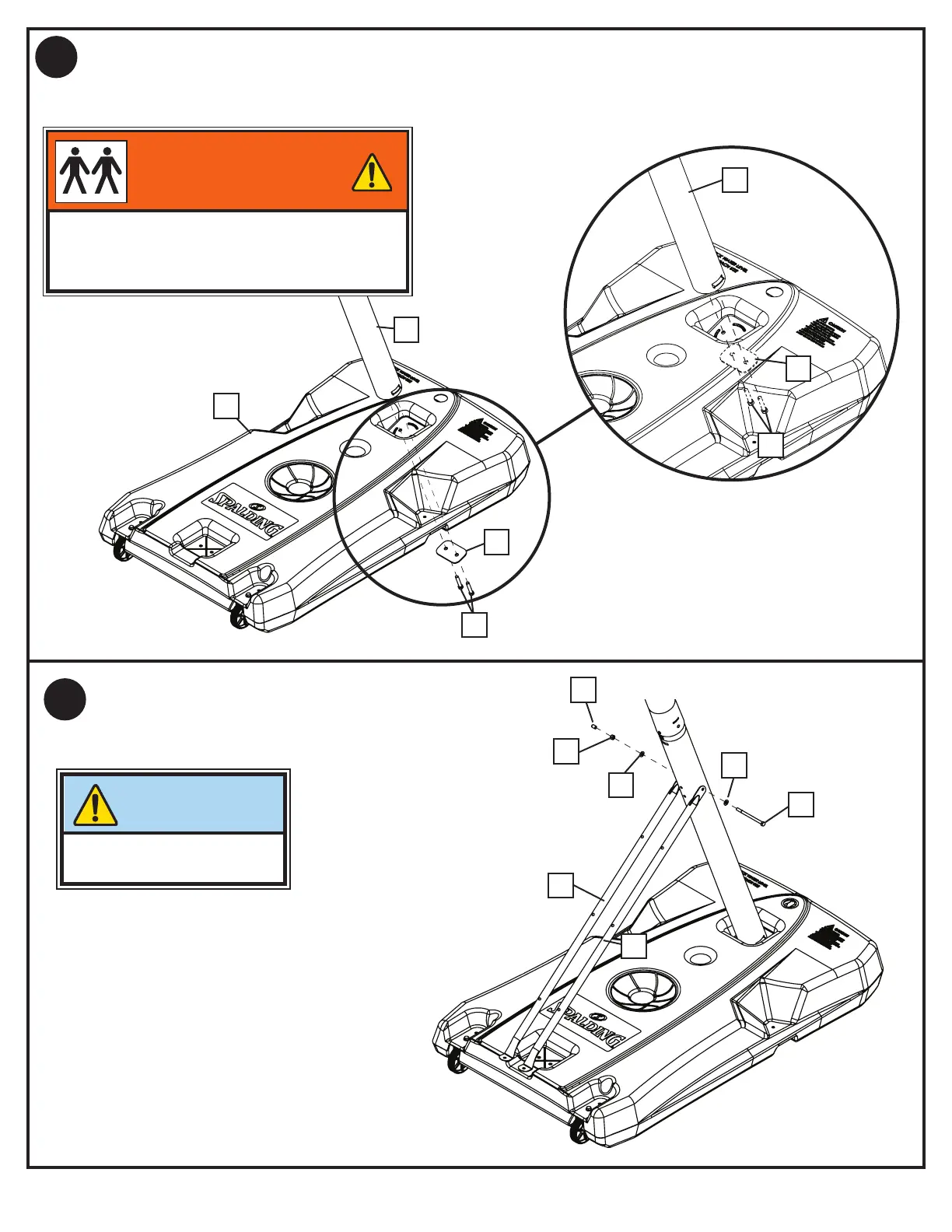 Secure pole assembly to base using bolts (50) and pole mounting bracket (49) as shown.