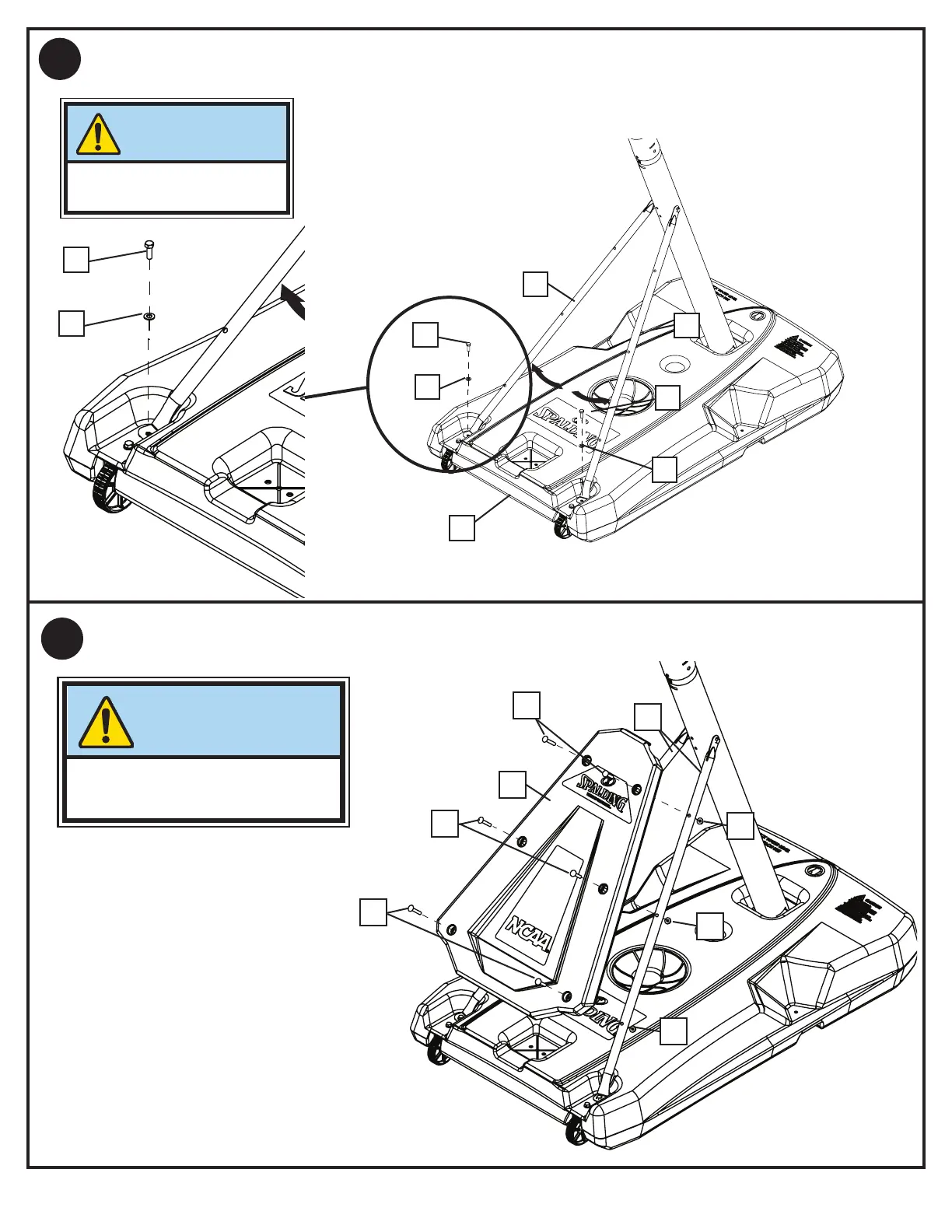 Secure ends of base struts (2) to wheel bracket (7), as shown. Repeat for opposite side.