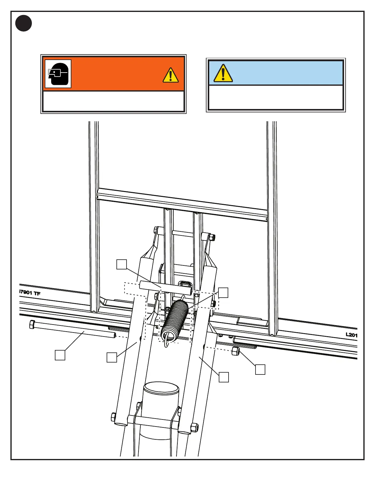 spring (33) over spacer (66). Insert bolt (29) through right side upper elevator tube (35) and