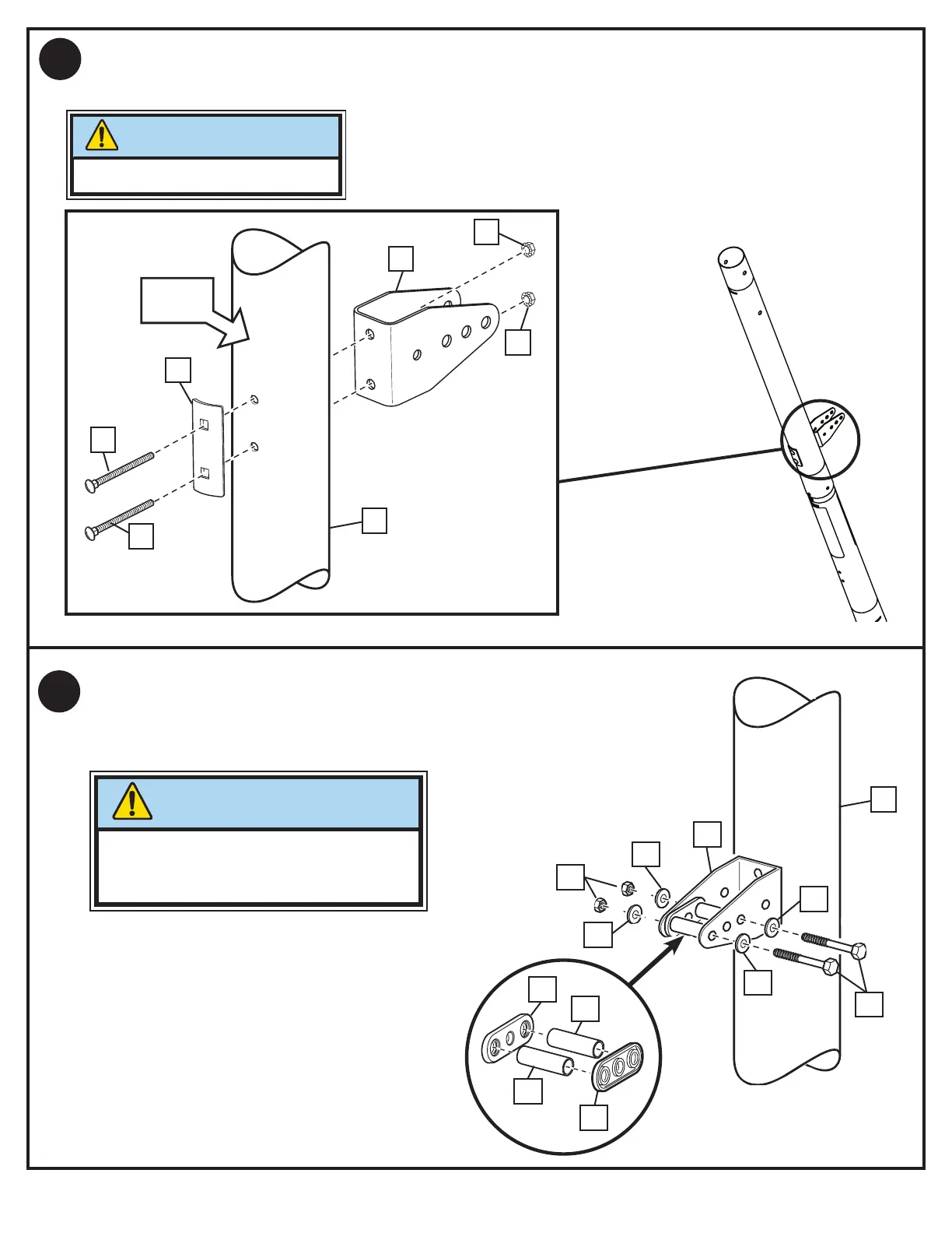 carruaje (16) al poste superior (4) como se muestra. Apriete las tuercas bridadas (14) por