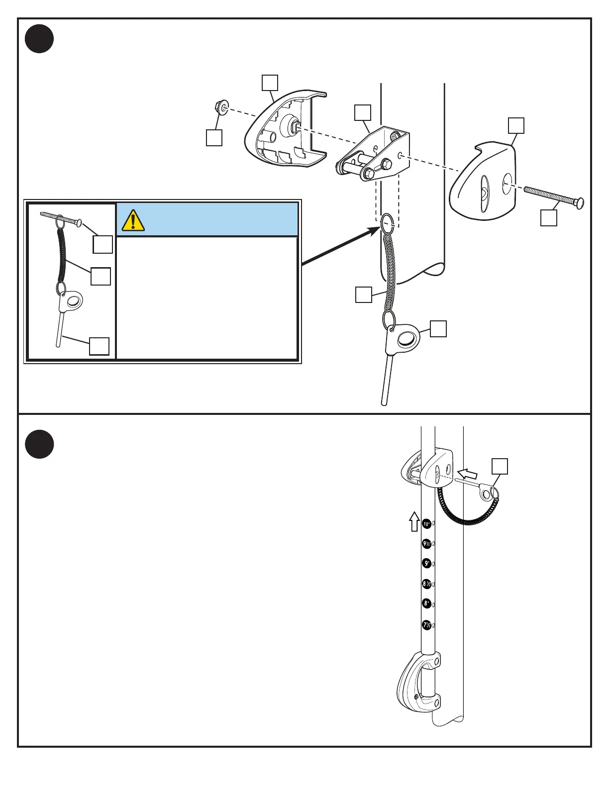 Fije la cuerda (25) al pasador de bloqueo (24) como se muestra. Fije las cubiertas (22) al soporte