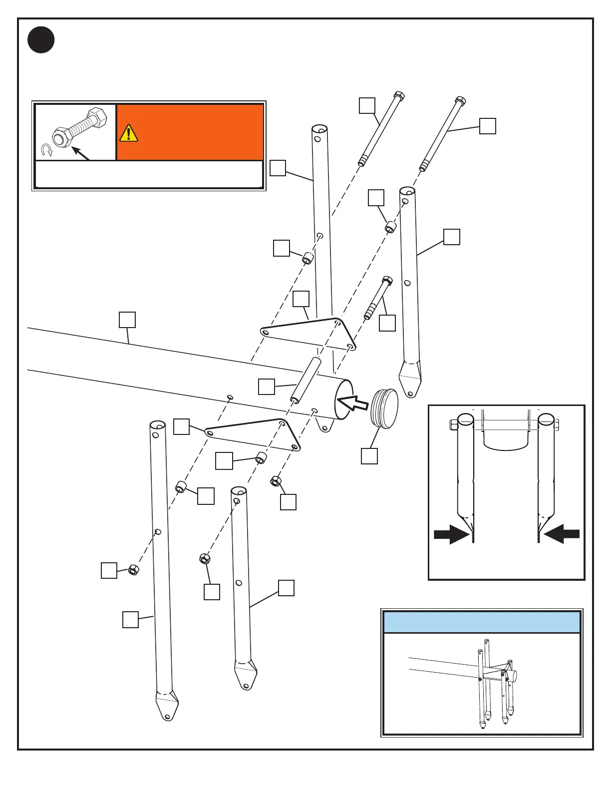 Instale los tubos del elevador (32 y 35) en las placas triangulares (37) y en la sección del poste