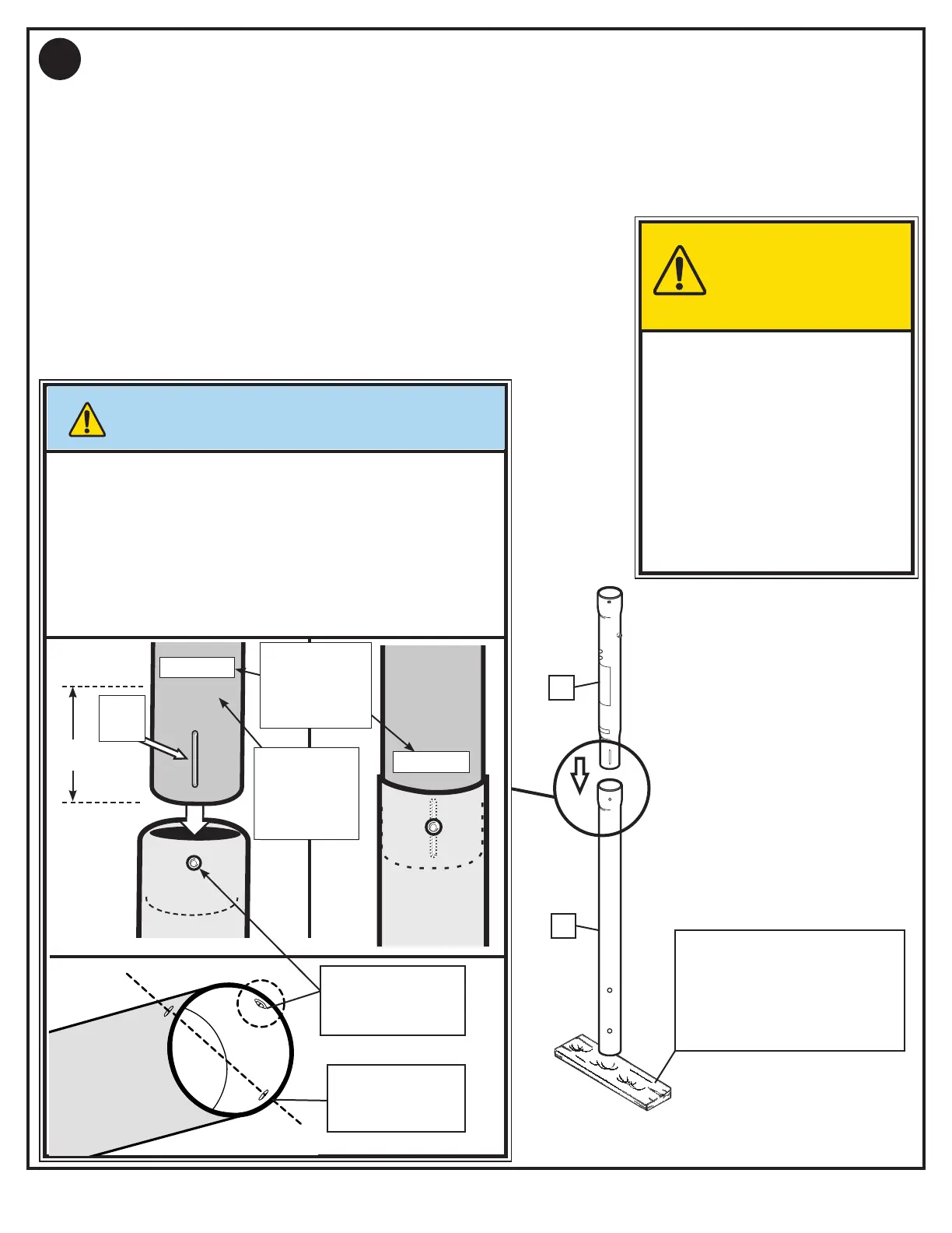 sur le pôle du milieu. Vous devriez avoir 3 1/2” (8.9 cm) le recouvrement quand convenablement assemblé.