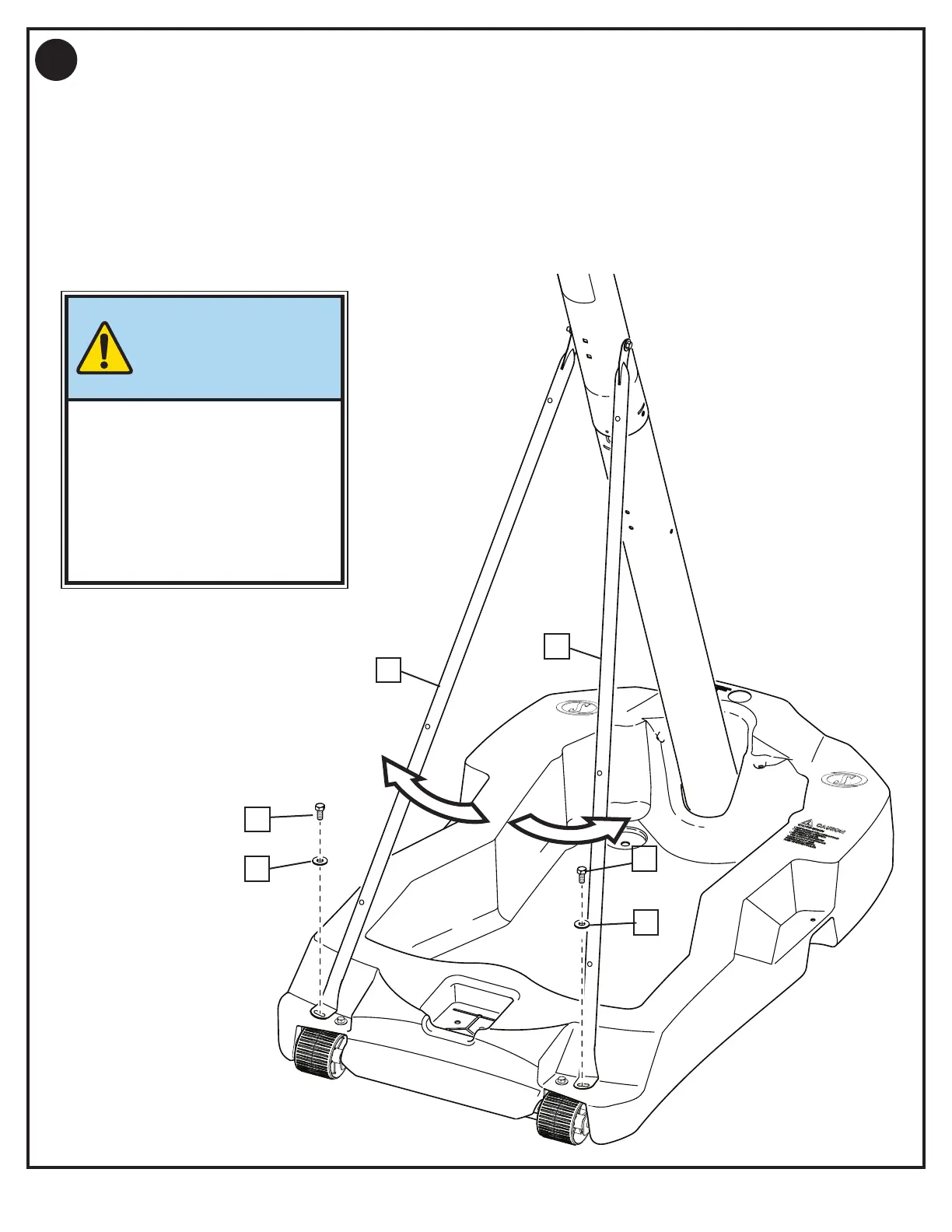 Rotate non-secured ends of base struts (2) and (3) to mounting holes in base as shown. Secure non-secured ends of