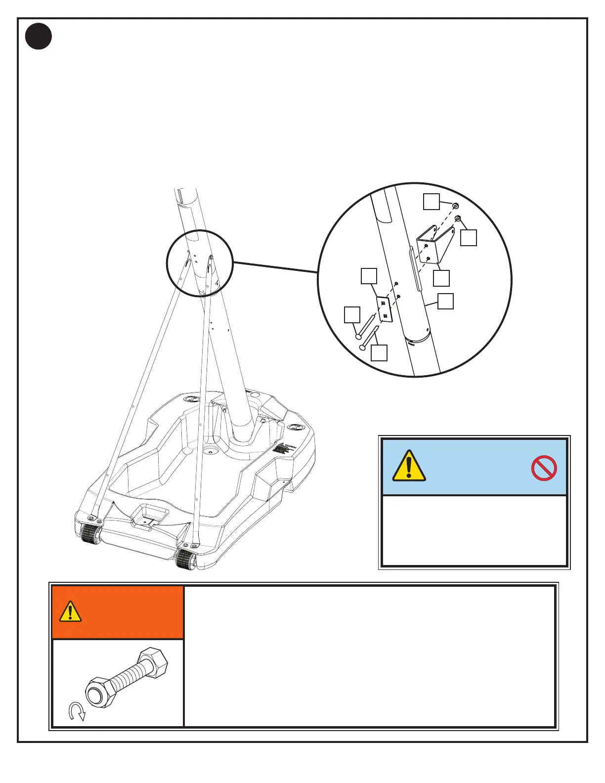 Install pole mount bracket (15) and reinforcement bracket (42) with carriage bolts (16) as shown. Tighten ange