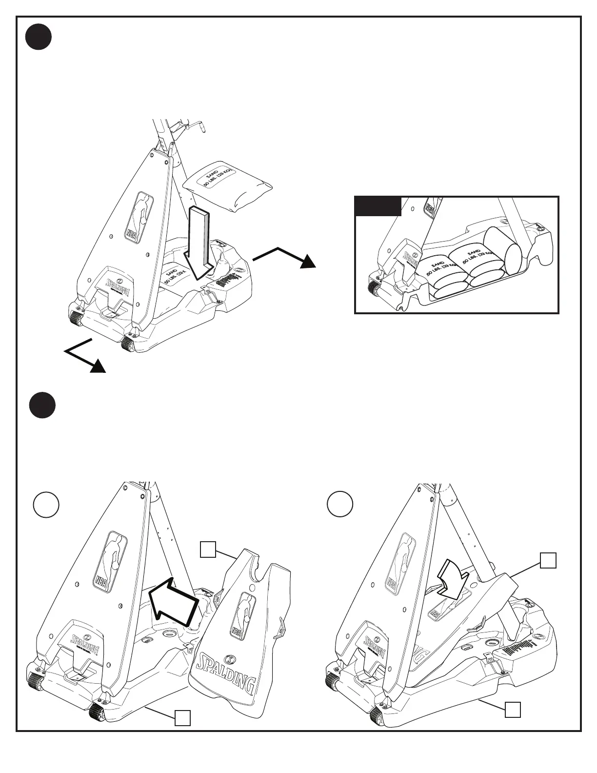 Place ve 50 lb. (23 kg) sand or cement mix bags into base cavity as shown below.