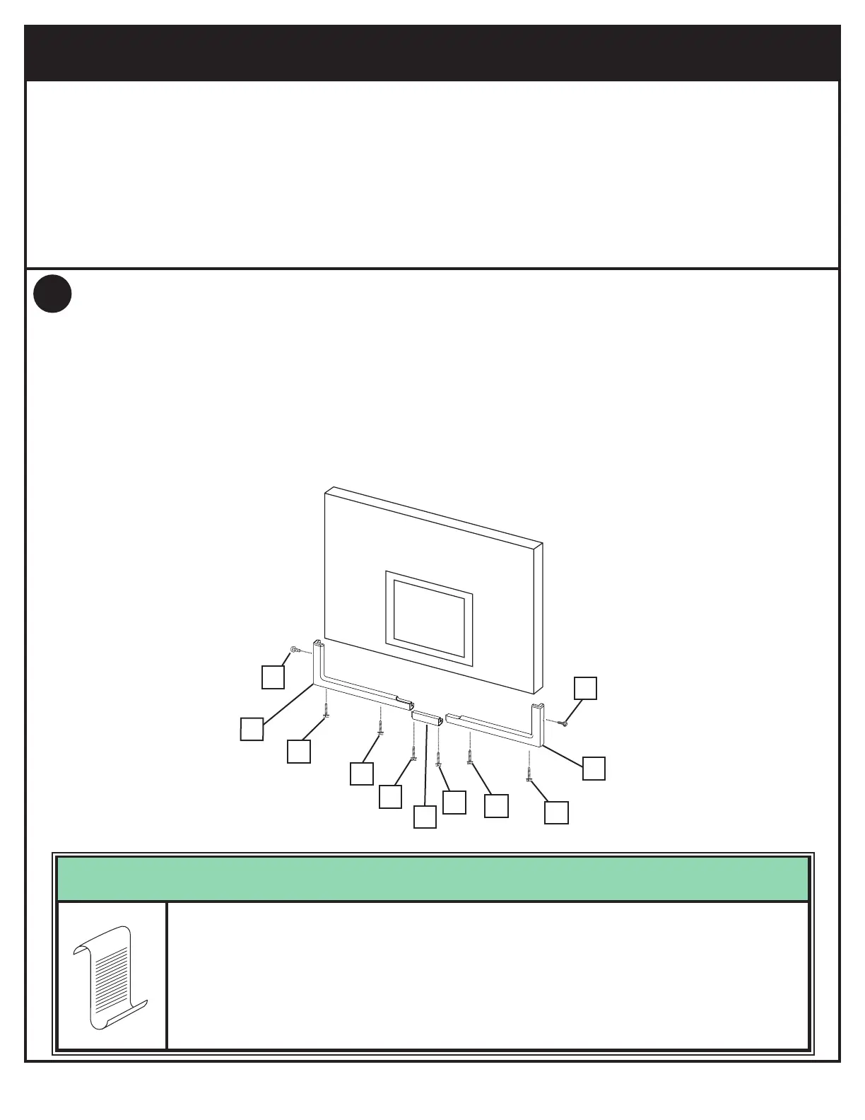 Check fastener locations to make sure they will not damage the backboard glass. Do not overtighten the screws, it