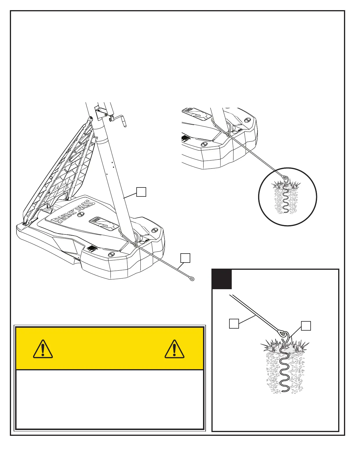 El lazo ata (59) alrededor de pavoneos (6) como mostrado y la tirón hacia la espalda de la base. Enrosque estaca de suelo (58) en el