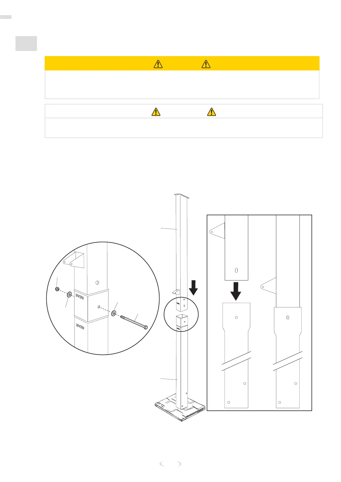 IF MINIMUM POLE ENGAGEMENT OVERLAP OF 4-5" (10-12.7 CM) CANNOT BE ACHIEVED !! STOP !! DO NOT