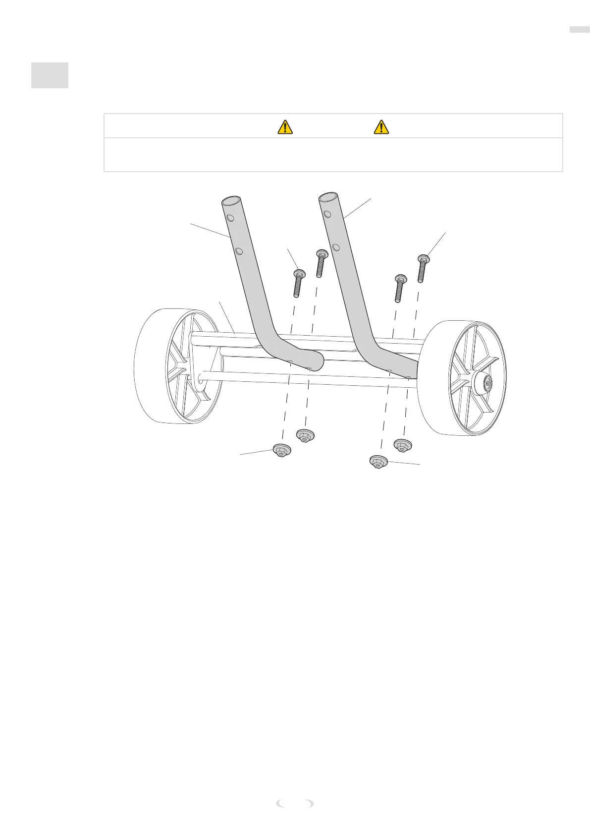 4. Secure the hinge tubes (15) to the wheel bracket (10) using the bolts (W8) and nuts (W2).