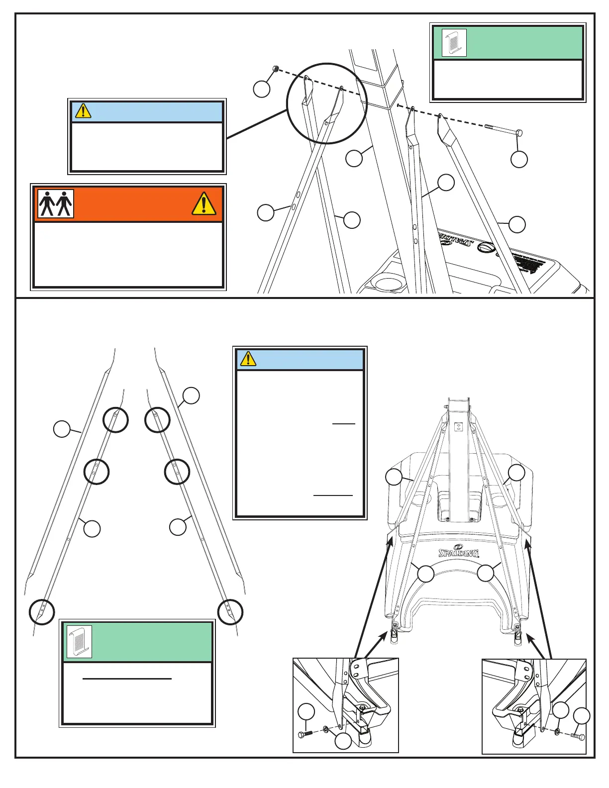 Attach struts (4 and 5) to bottom pole (2) using bolt (B8) and nut (B6).