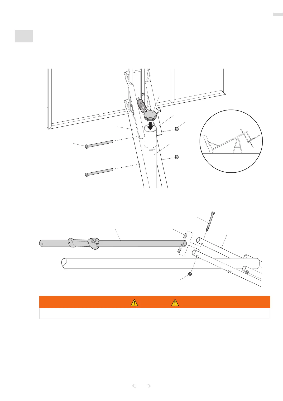 5. Support the pole on a sawhorse. Attach upper and lower elevator tubes (41 and 42) to upper pole