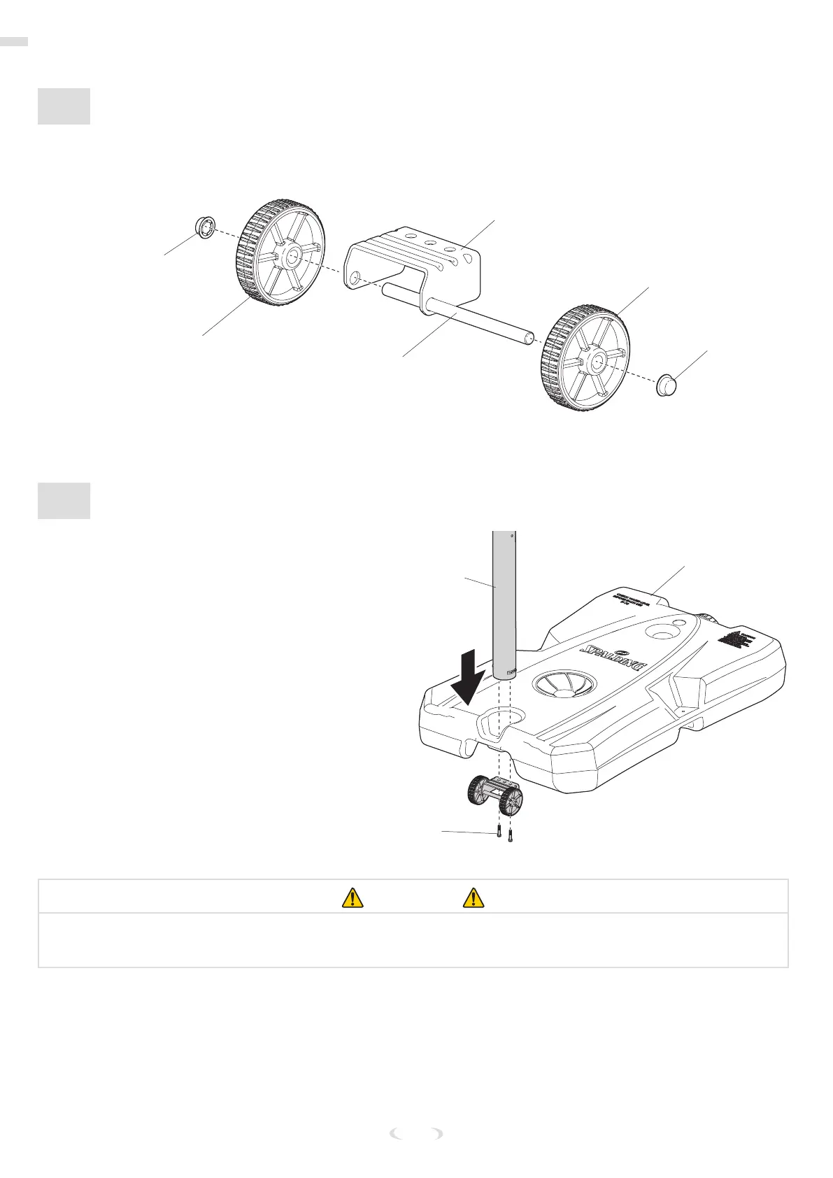 1. Introduzca el eje de las ruedas (2) a través del soporte de las ruedas (19).
