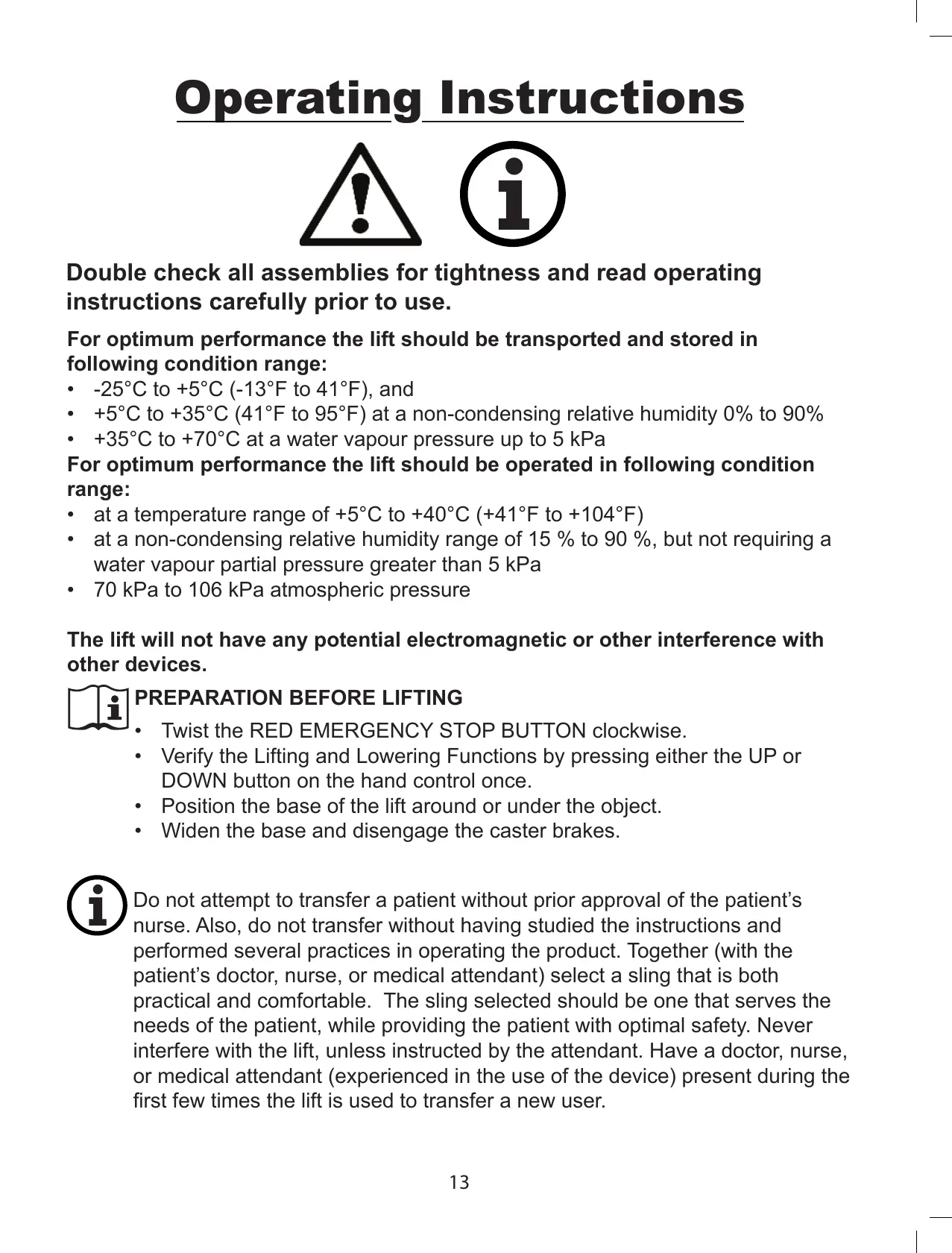 interfere with the lift, unless instructed by the attendant. Have a doctor, nurse,