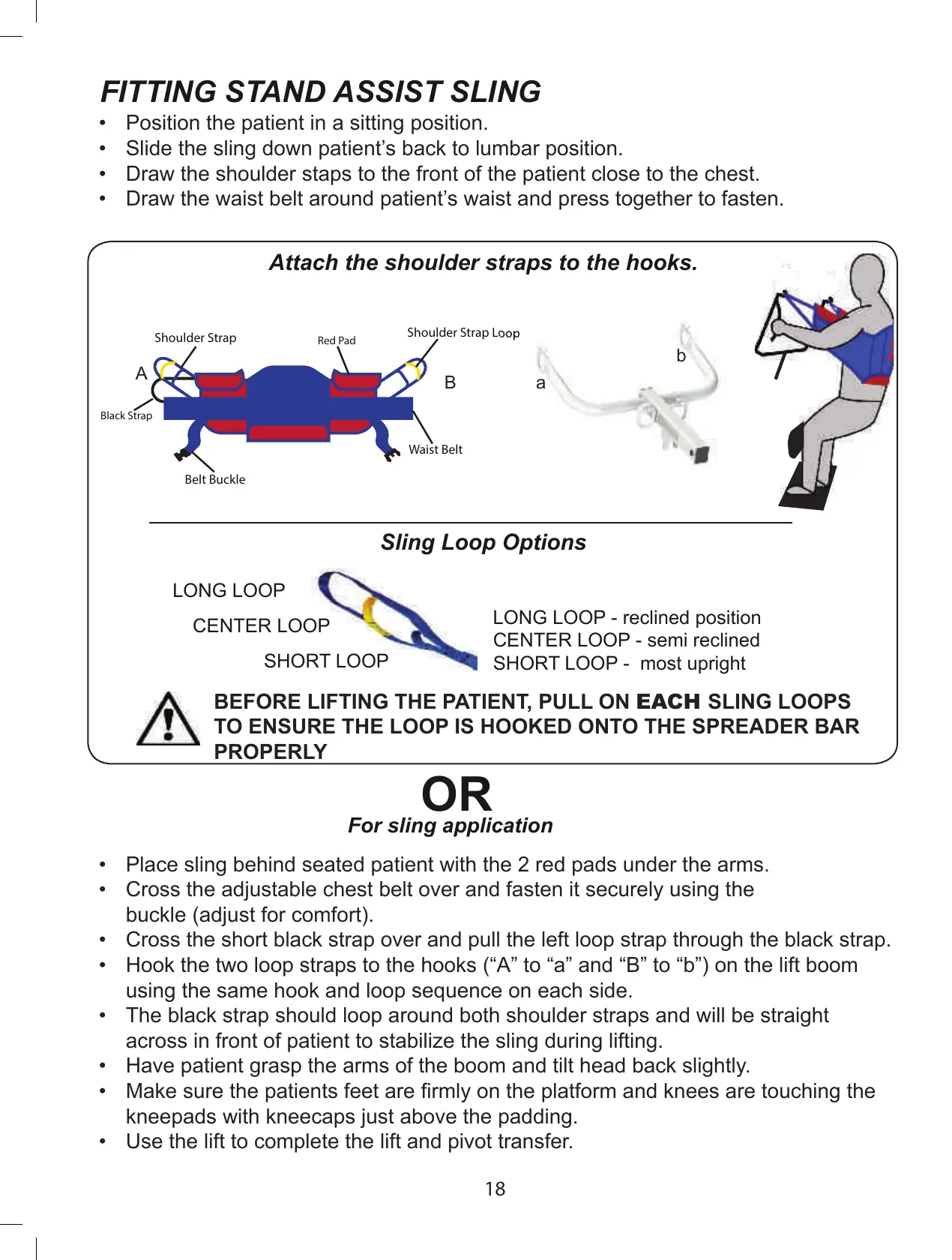 • Place sling behind seated patient with the 2 red pads under the arms.