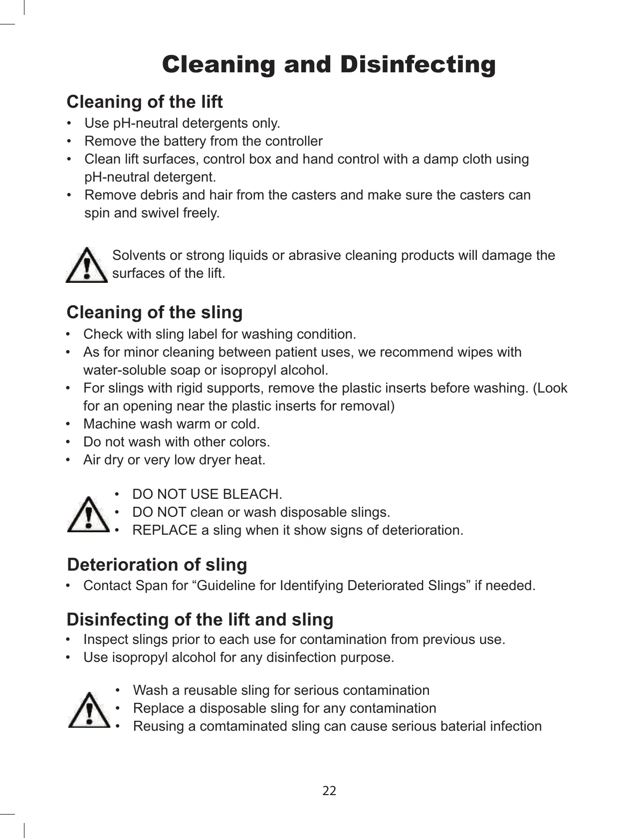 • Clean lift surfaces, control box and hand control with a damp cloth using