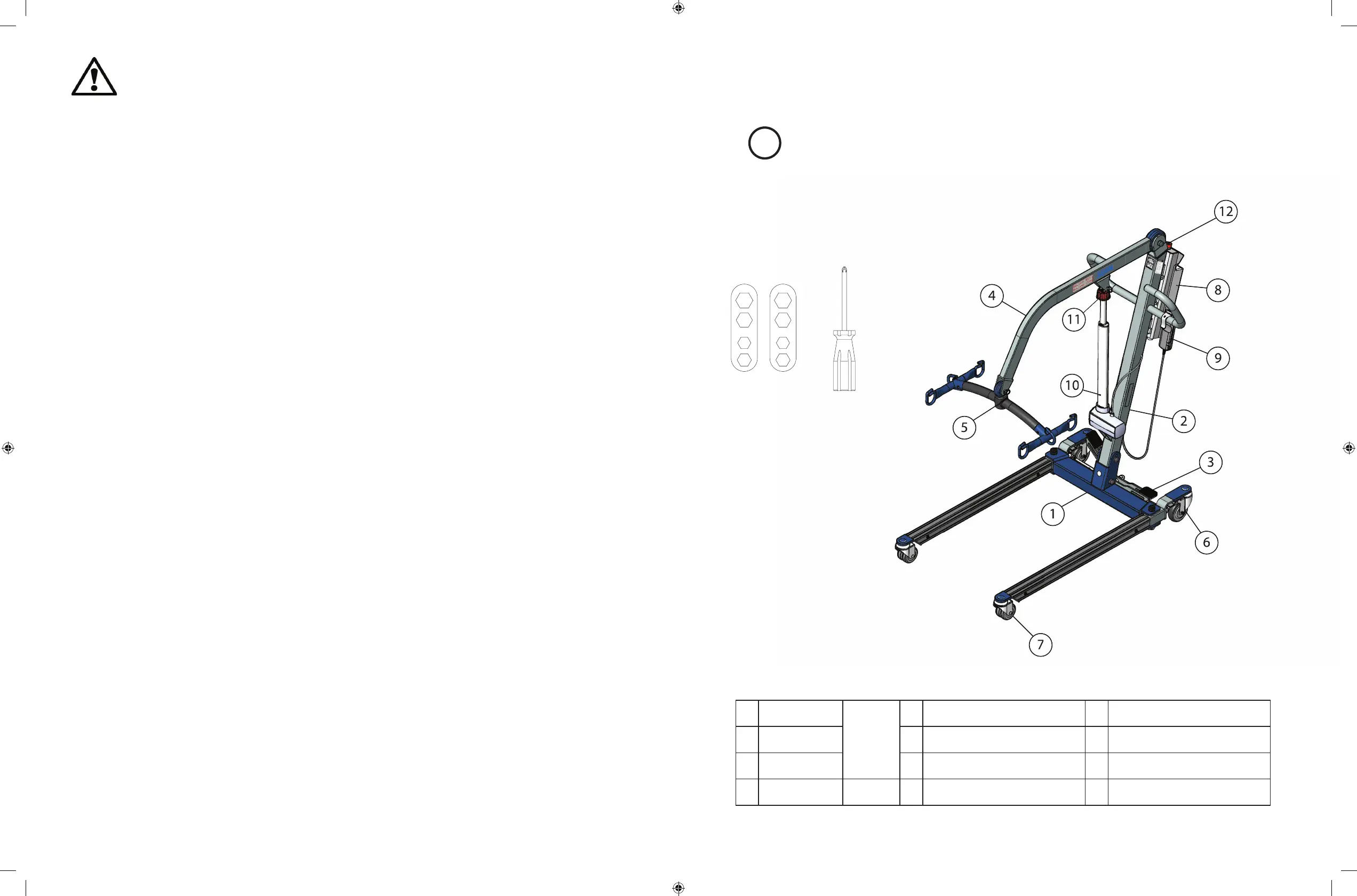 • DO NOT service any parts of the lift while in use with a patient.