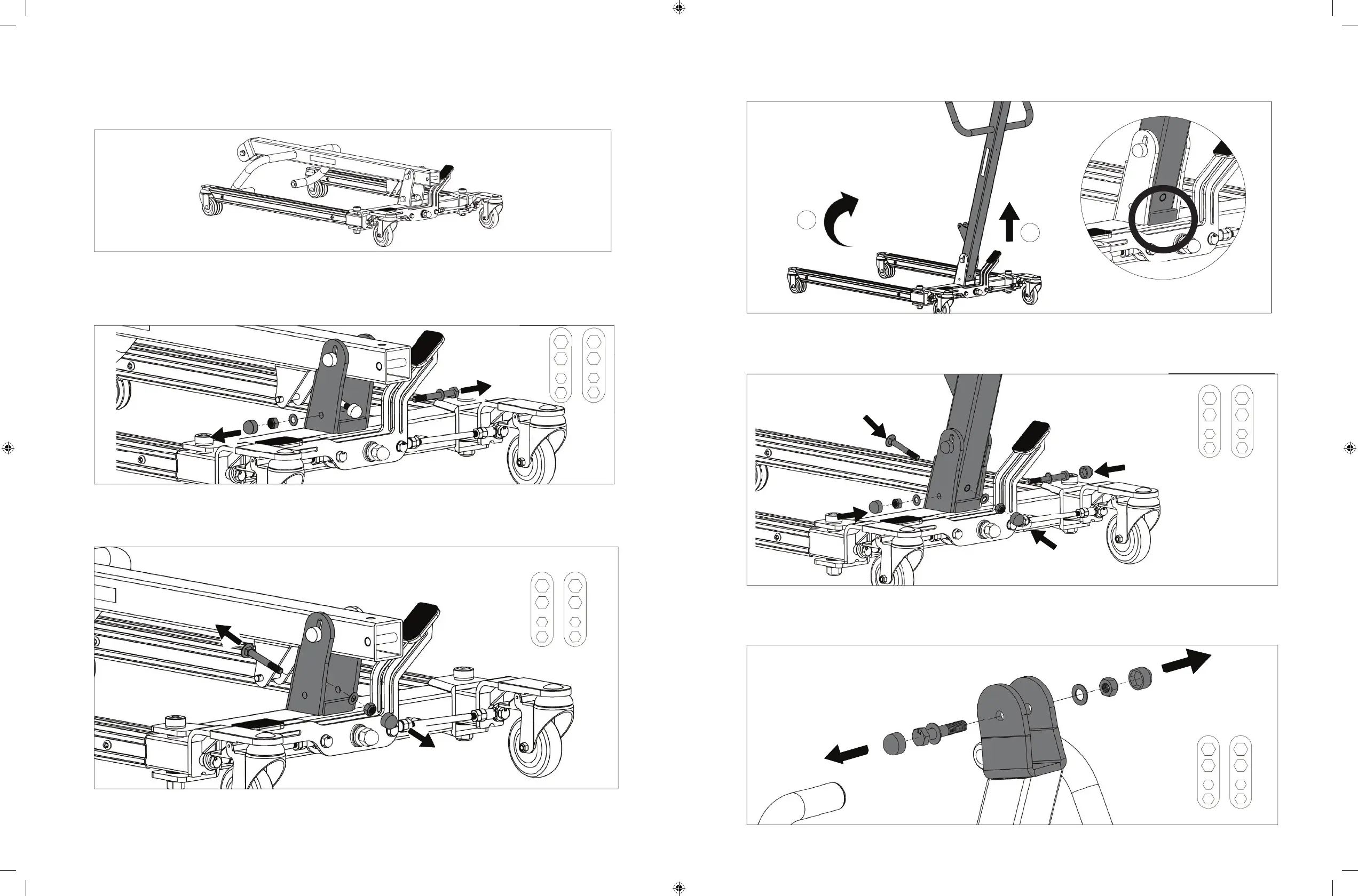 Step 5: Reinsert and tighten the front and side bolts, nuts, washers to secure the