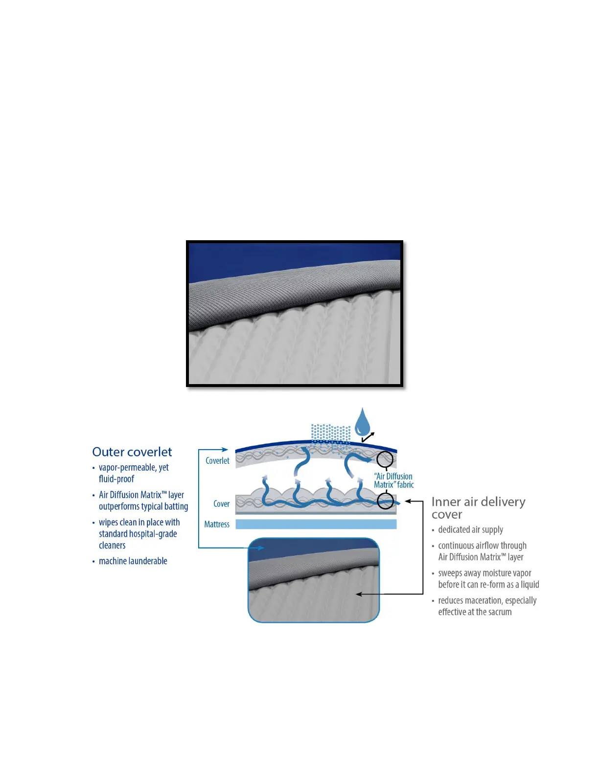 patient. Compare to typical low air loss designs that cause the patient’s body to press the cover directly onto