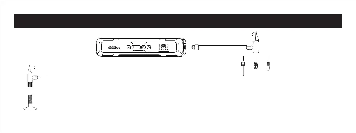 To inflate: The inflator can be directly connected to a Schrader valve to start inflating.