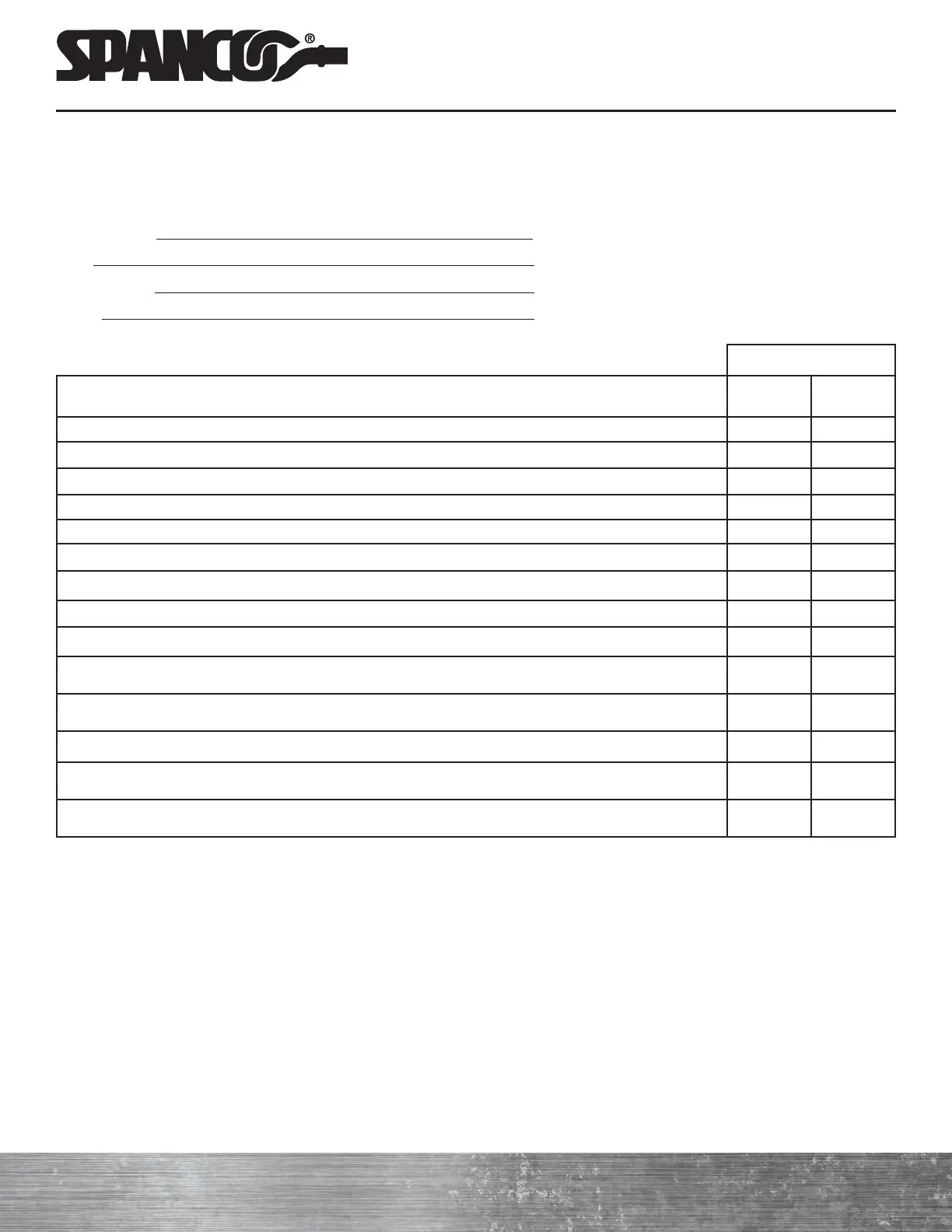 14. Check system for unauthorized modifications. Only Spanco can authorize modifications. Remove system from service if