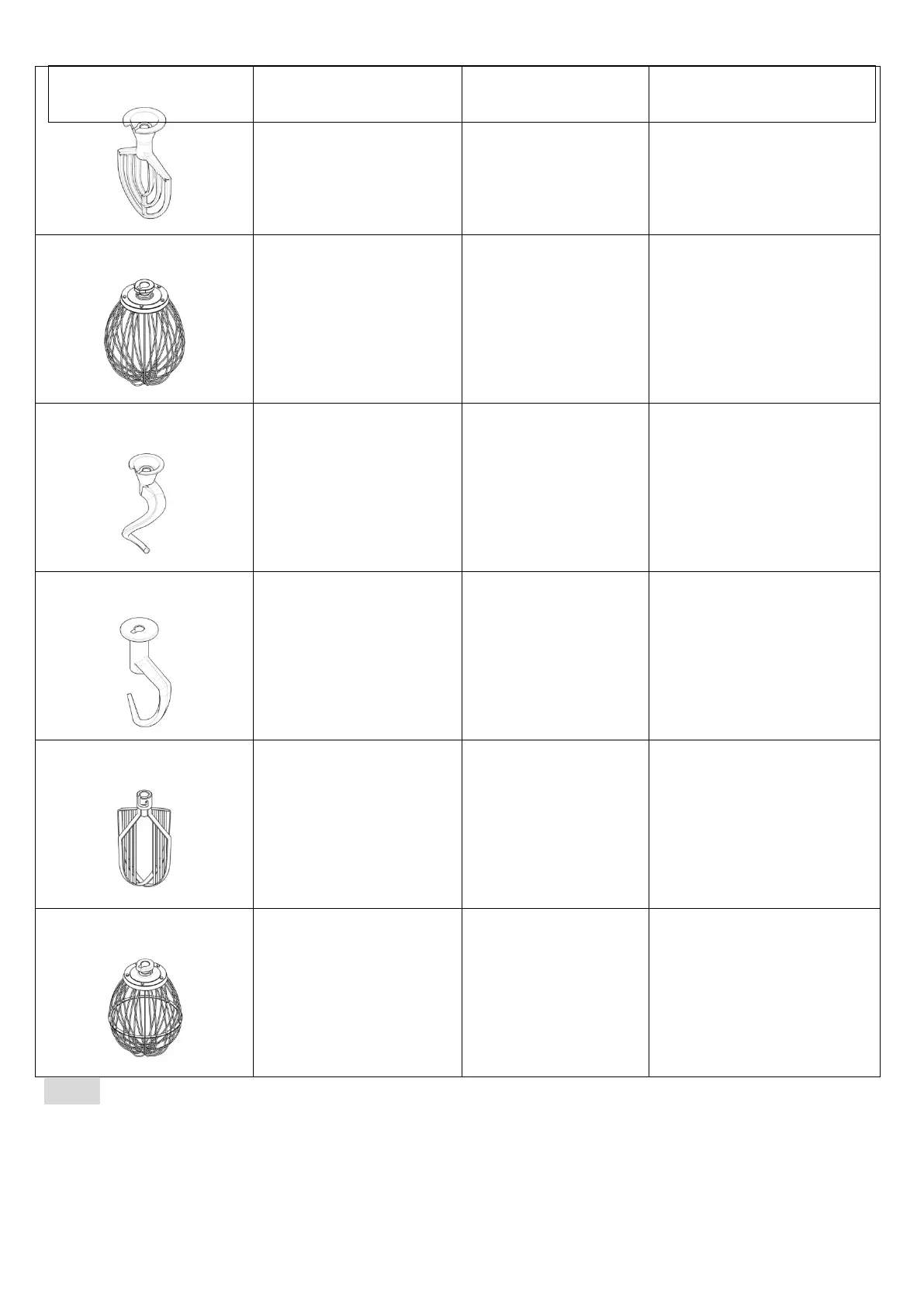 NOTE: “E” DOUGH HOOK, “C” WING WHIP AND HEAVY DUTY WIRE WHIP is optional accessory.