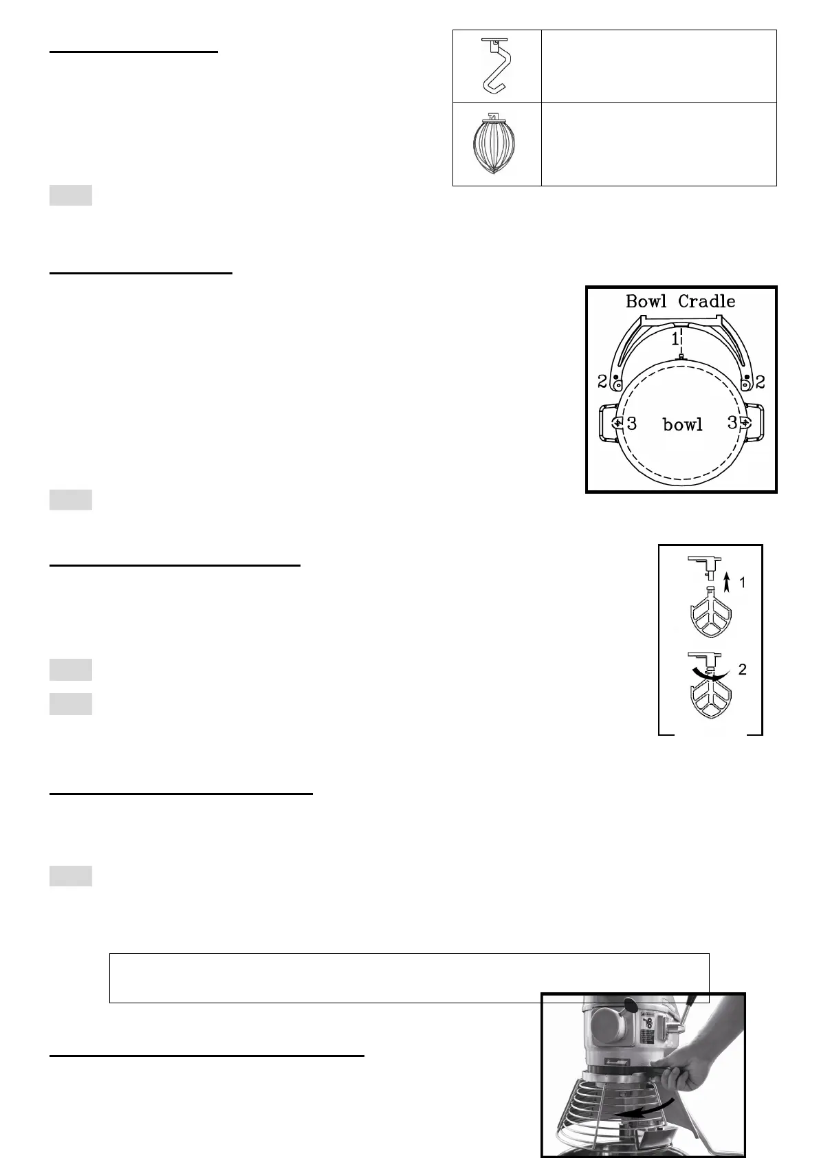 With the bowl cradle lowered, place the chosen mixing tool in the bowl
