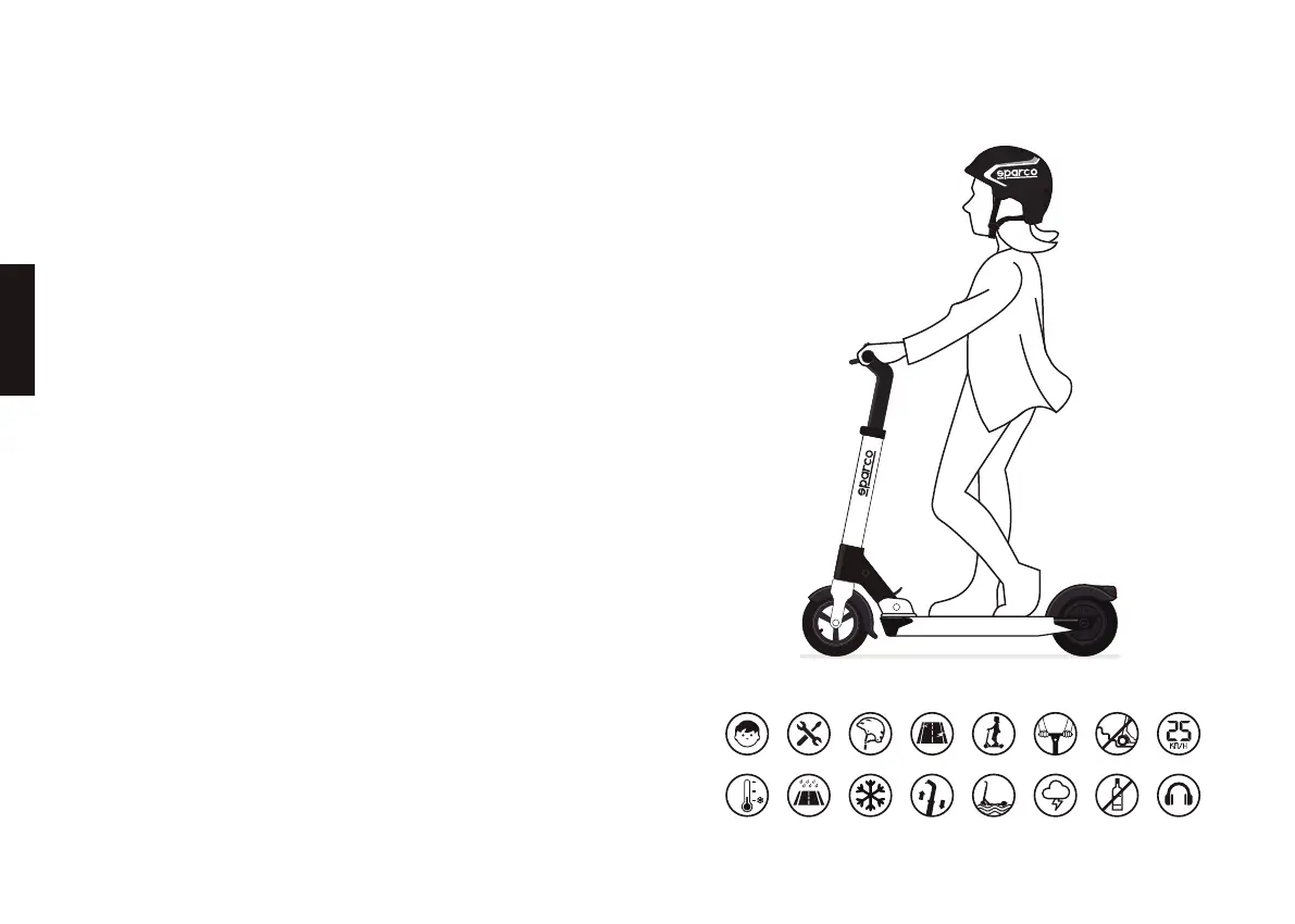 14. Por seguridad, no conduzca el patinete con mal tiempo, por ejemplo,