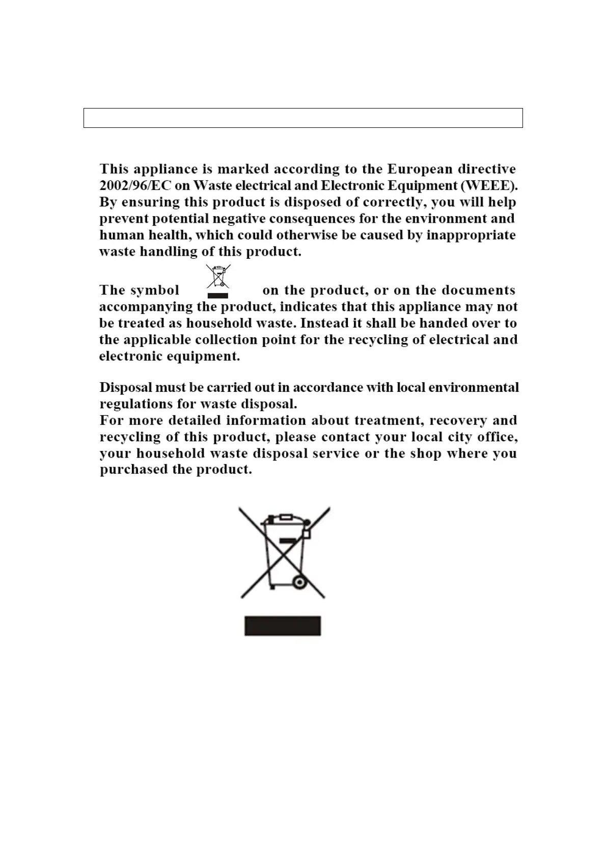 o Please discard all packaging material with due regard for the