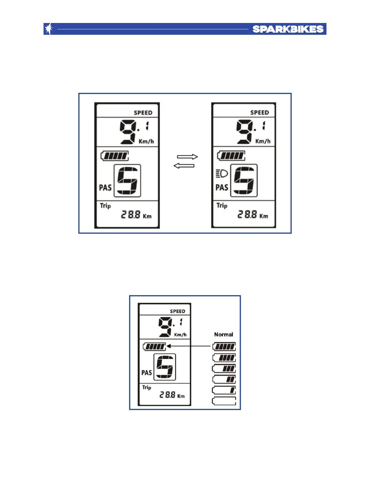 Spark Bikes Spark X - Lights and Indicators; Switching Head and Rear Lights; Battery Indicator