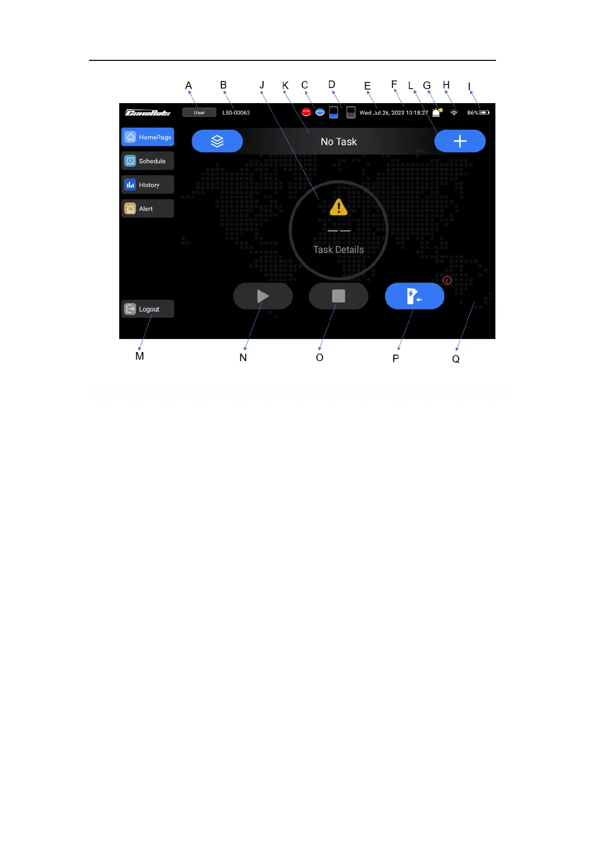 ⚫ The emergency stop icon is shown on the screen only after it has been pressed.