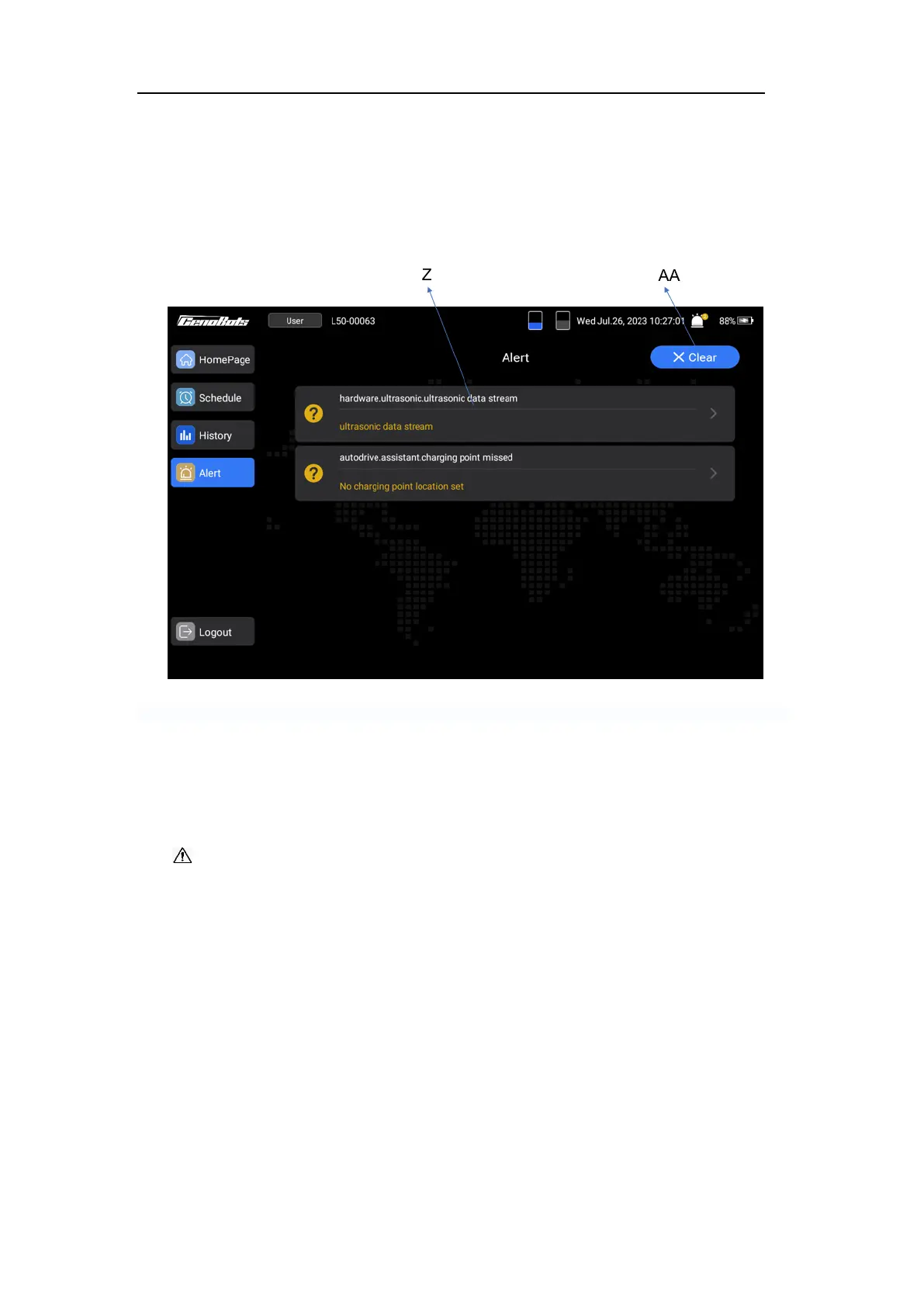This page displays the details of the alert, and the “Clear” button is for clearing the