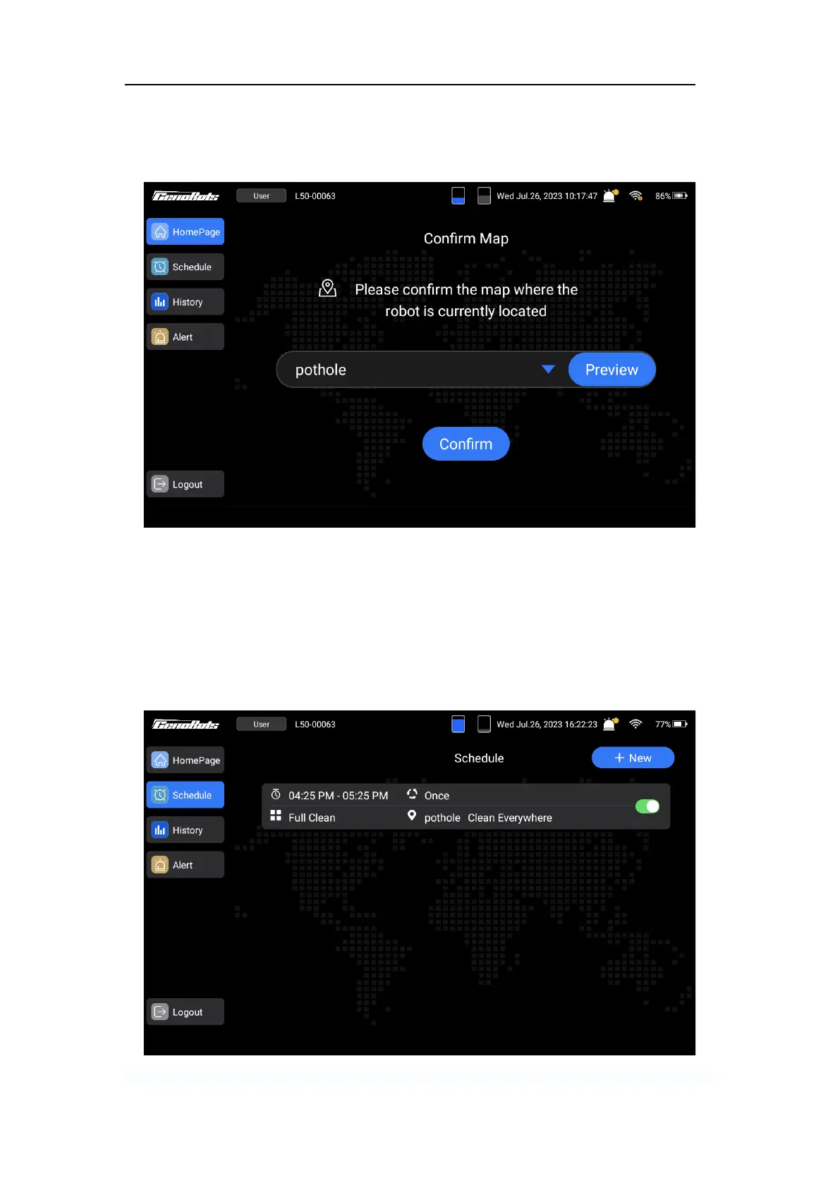 After login, select the right map and tap ‘Confirm’ to enter the next step.